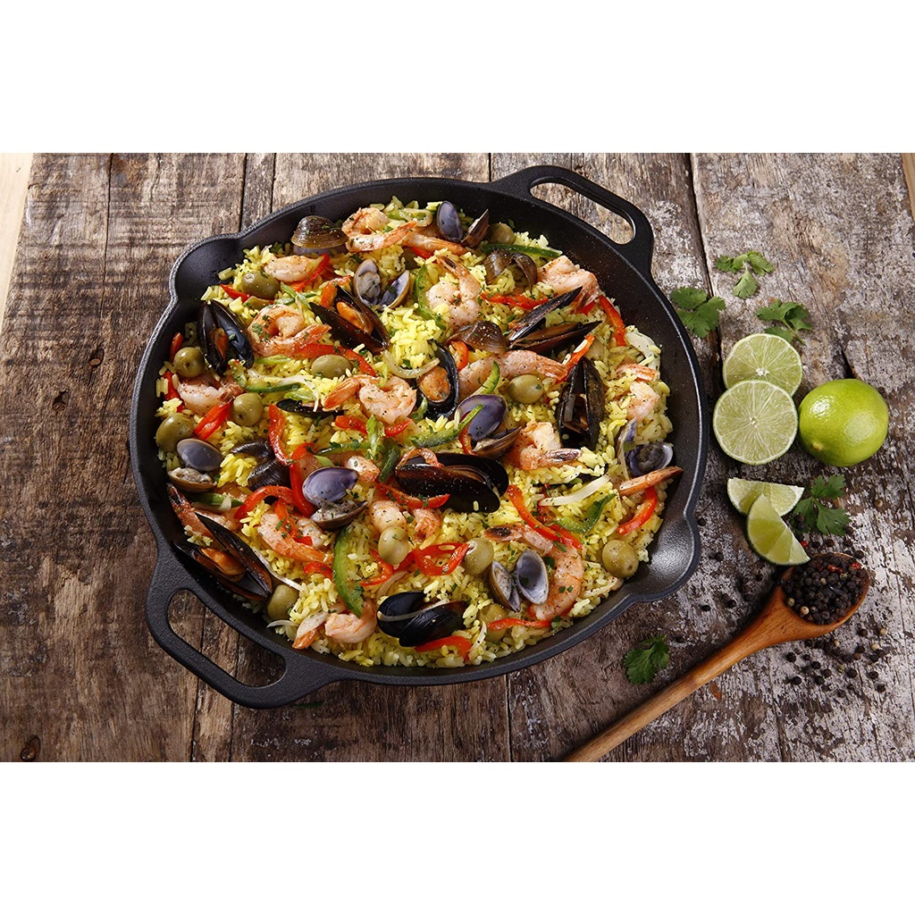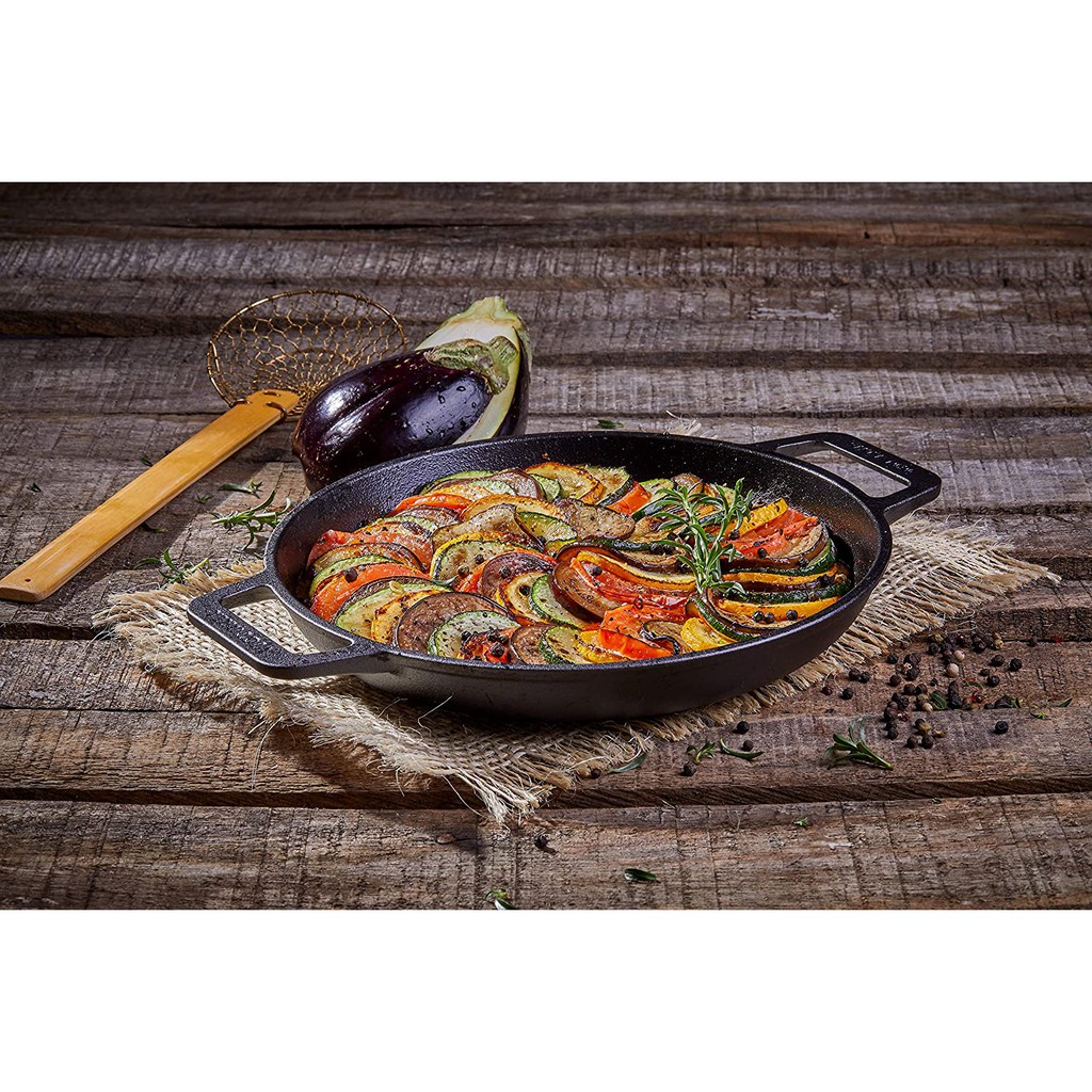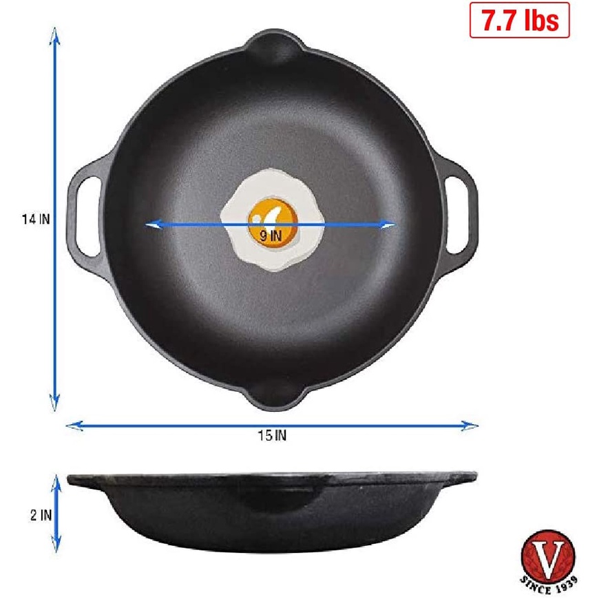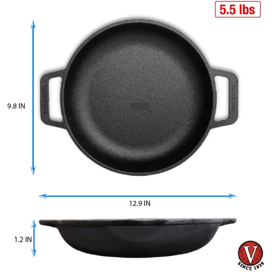 Victoria Cast Iron Round Skillet with Double Loop Handles Seasoned with 100% Kosher Certified Non-GMO Flaxseed Oil