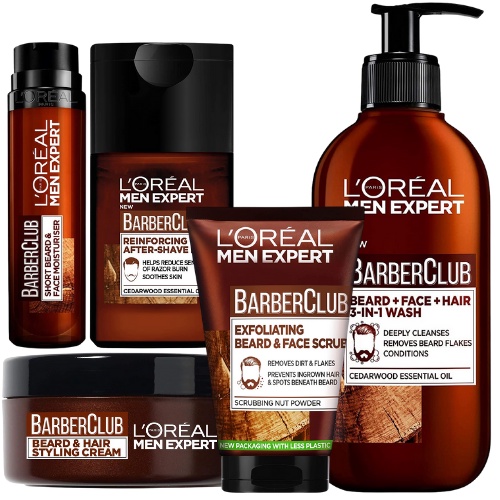 L'Oreal Men Expert Barber Club 3-in-1 Wash | Beard Face Scrub | After-Shave Balm | Shampoo Wash Bar | Styling Cream