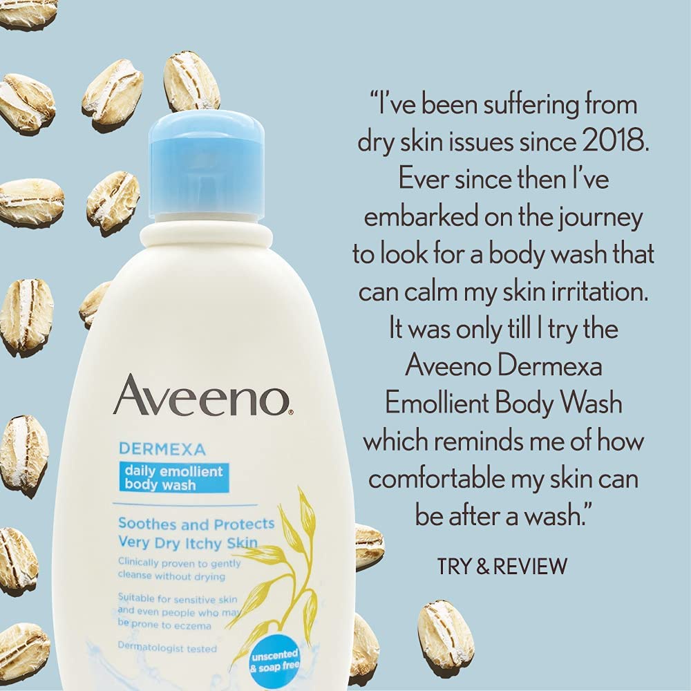 [ iiMONO ] Aveeno Dermexa Daily Emollient Cream | Body Wash | Balm - Immediate Comfort Dry Itchy Skin, Eczema Skin