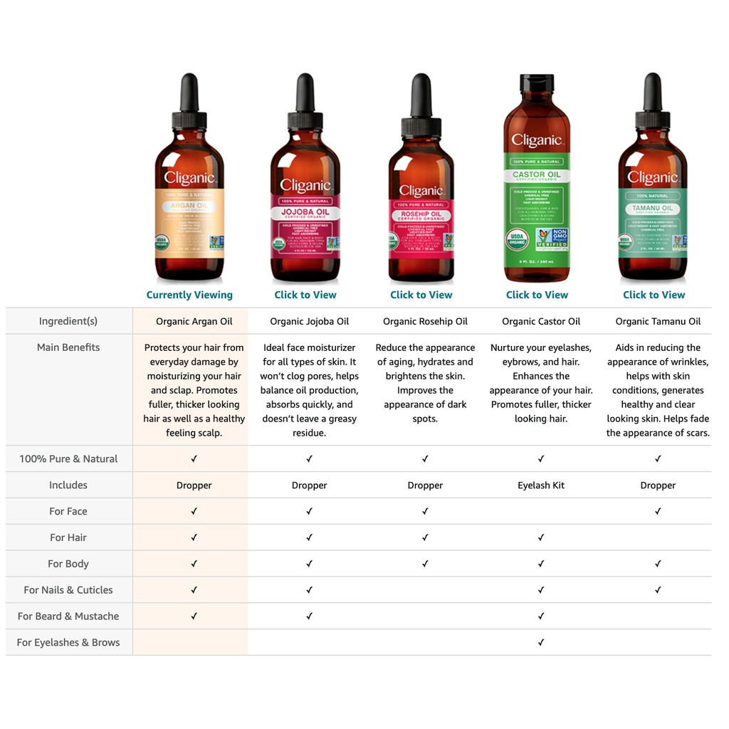 [ iiMONO ] Cliganic Organic Argan Oil | Jojoba Oil | Castor Oil | Rosehip Oil, Hair Face Skin Cold Pressed Essential Oil