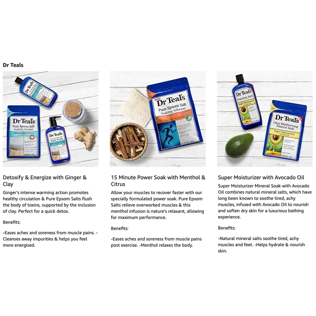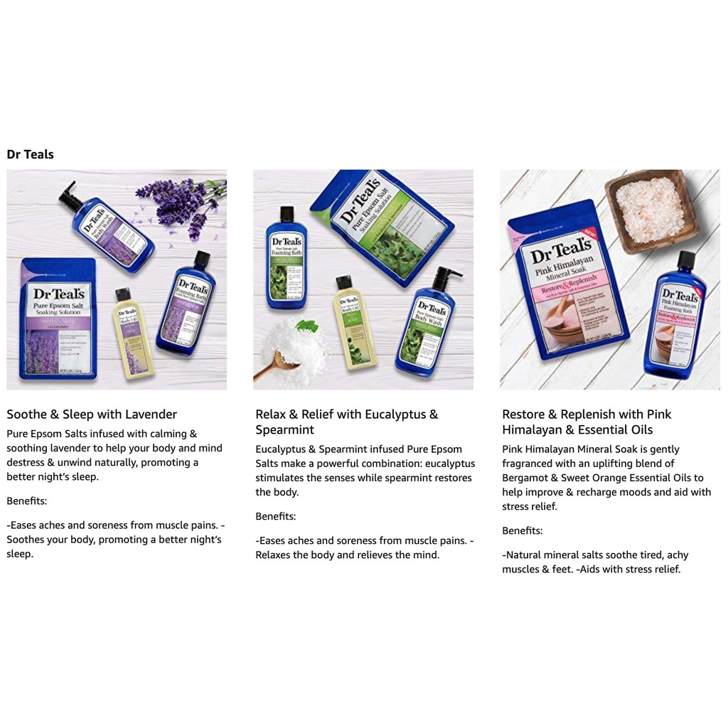 [ iiMONO ] Dr Teal's Foaming Bath with Pure Epsom Salt, Eucalyptus & Spearmint, Lavender, Chamomile, Ginger & Clay