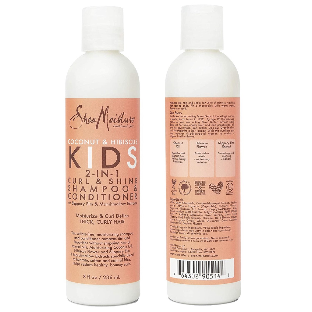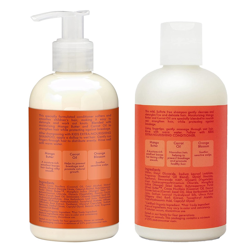 [ iiMONO ] SheaMoisture KIDS Mango & Carrot Extra-Nourishing | 2-in-1 Hibiscus Coconut Shampoo Conditioner | Detangler