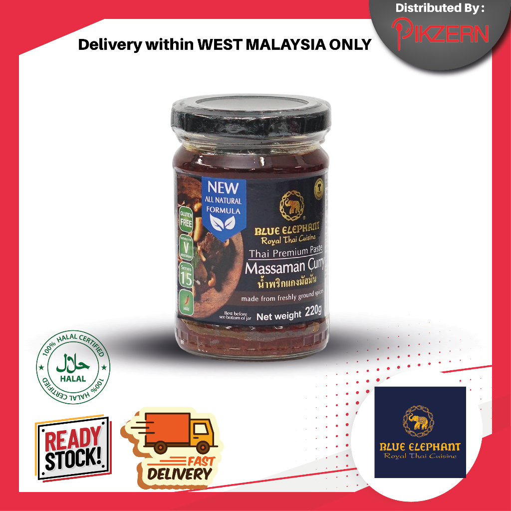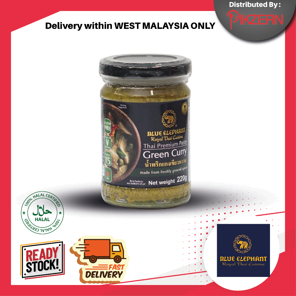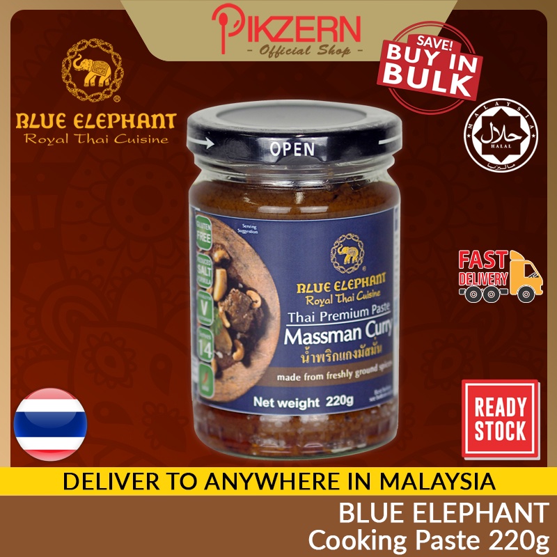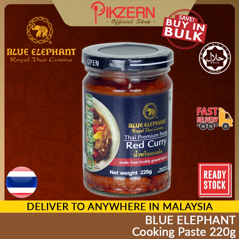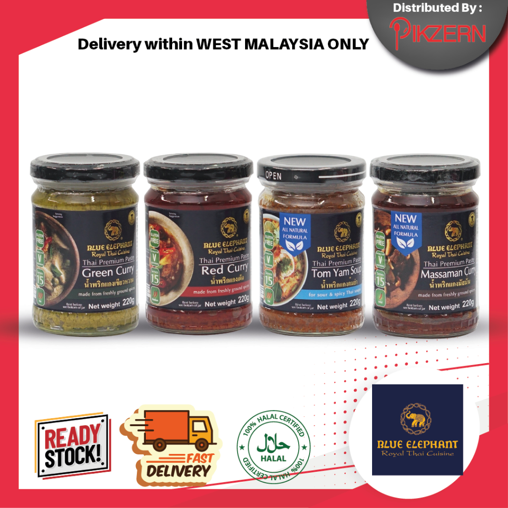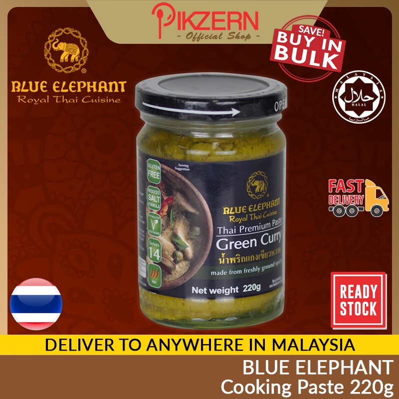 [Ready Stock] BLUE ELEPHANT 220g Cooking Paste Halal Vegan Thai Spice Natural Green Red Massaman Curry Tom Yam