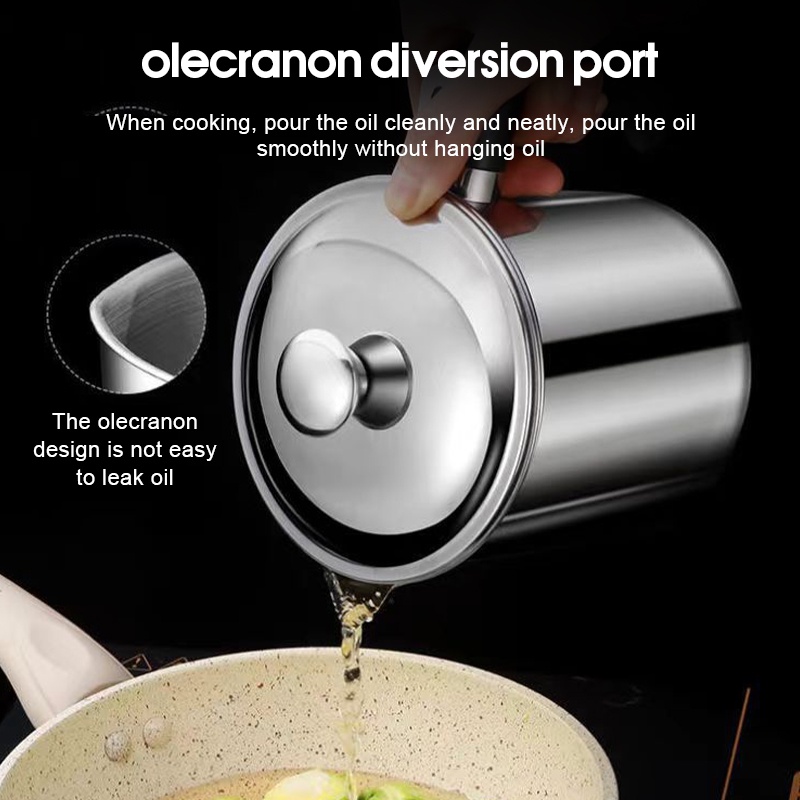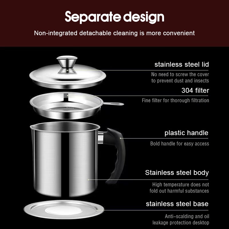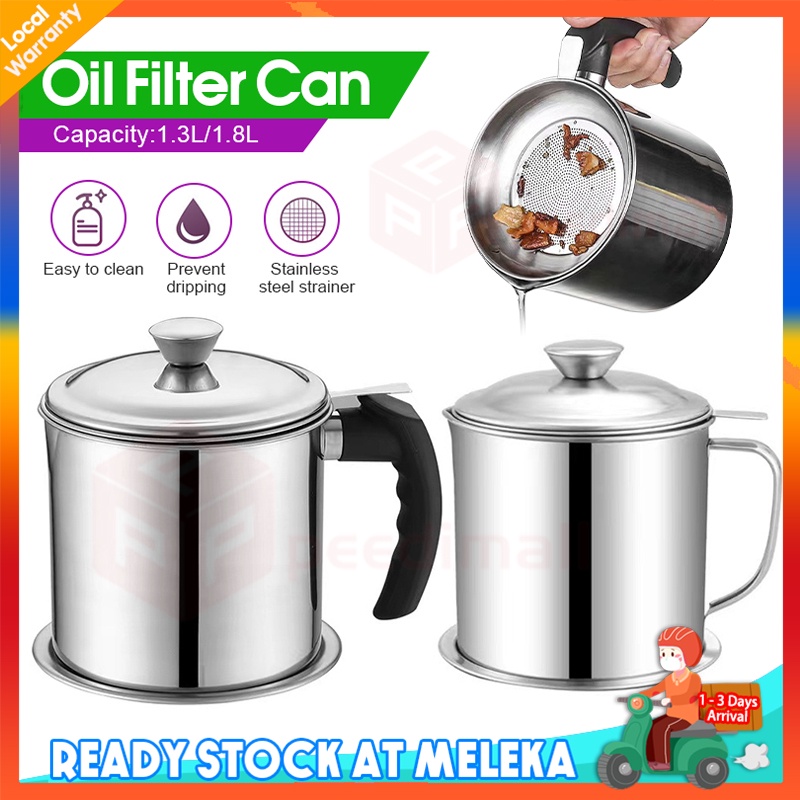Local Penapis Minyak Masak 304 Stainless Steel Cooking Oil Pot Oil Filter Storage With Strainer Oil Filter Mug 1.8L