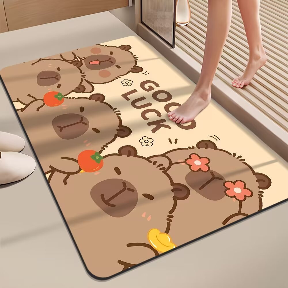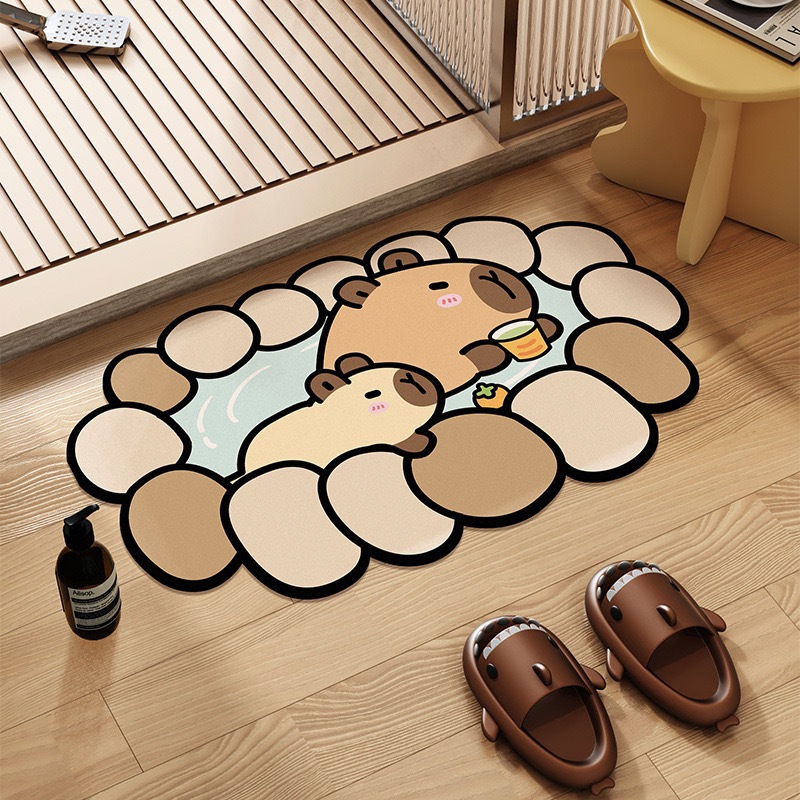 卡皮巴拉地垫硅藻泥风格Ultra Absorbent Capybara Diatom Mud Pad 浴室地垫卫生间吸水Quick Dry Diatomite Floor Mat脚垫入户门垫Bathroom Non-Slip Pad