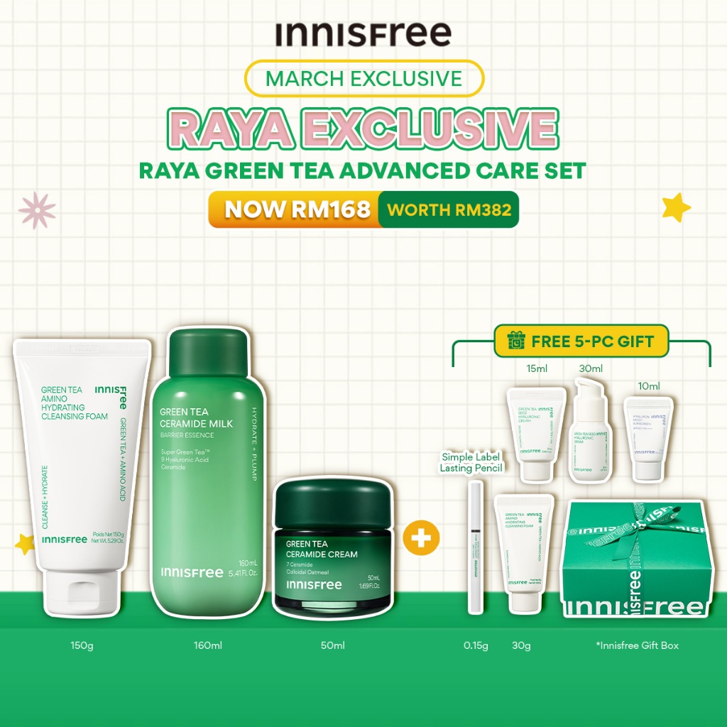 [MARCH EXCLUSIVE] Innisfree Raya Exclusive Set Green Tea Advanced Care Set (RM168 ; WORTH RM382)