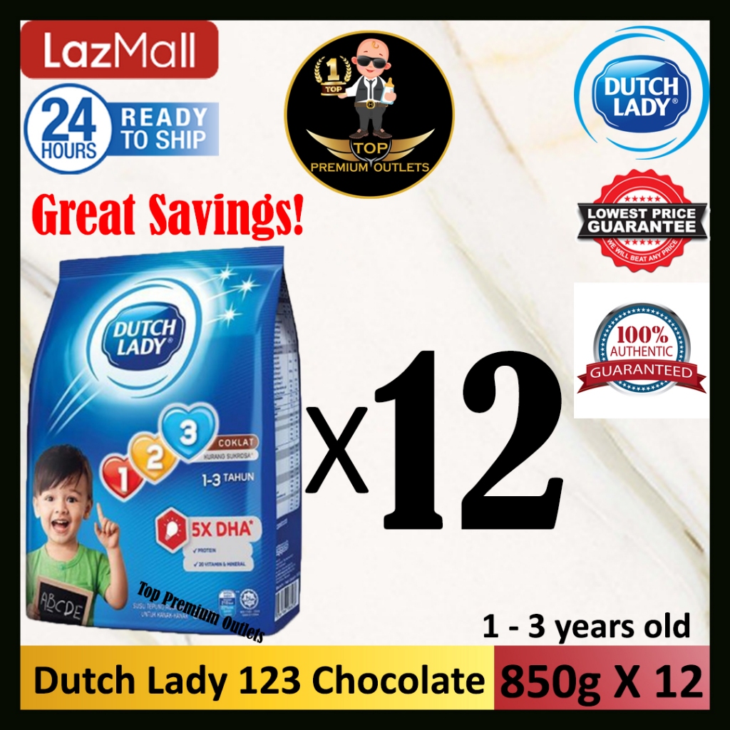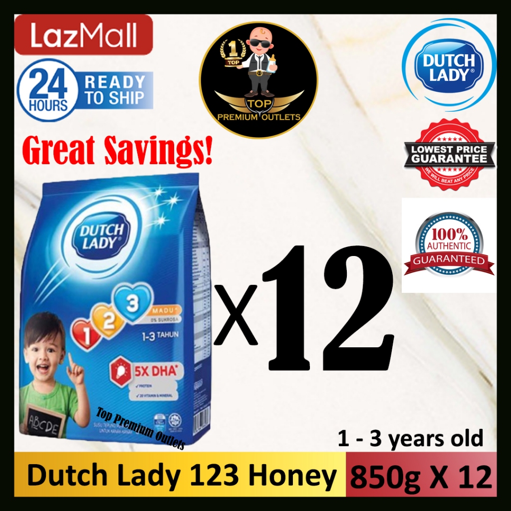 Dutch Lady 123 (Biasa / Madu / Coklat) (850g X 12) Exp: 07/2027 (Plain/Honey/Chocolate)