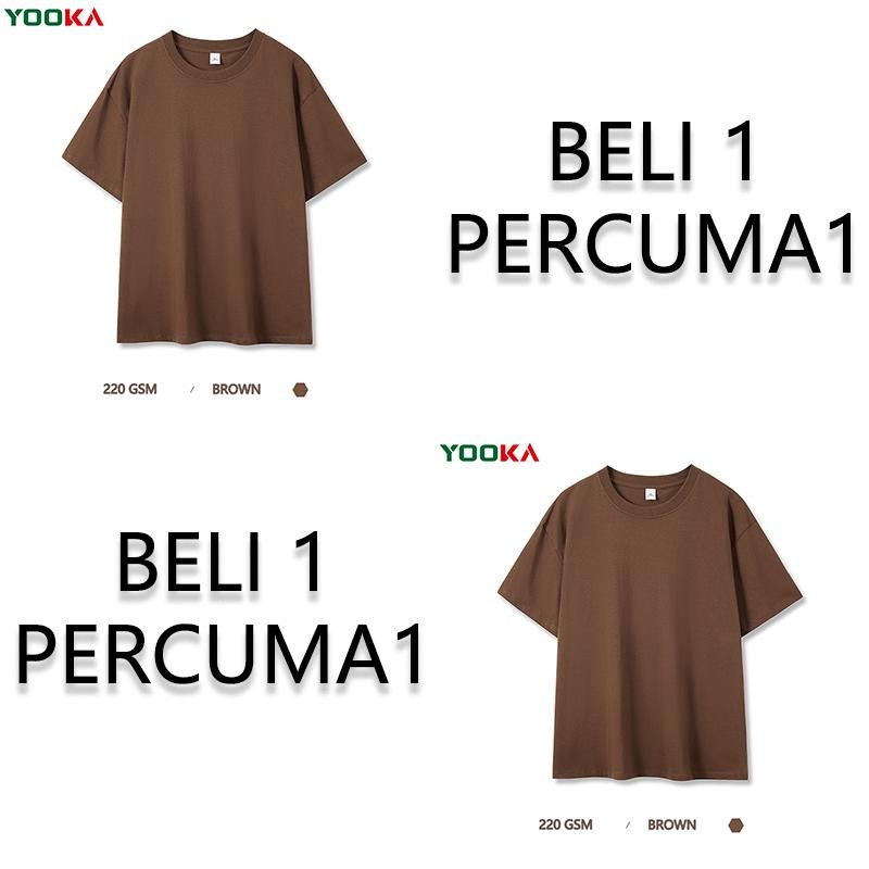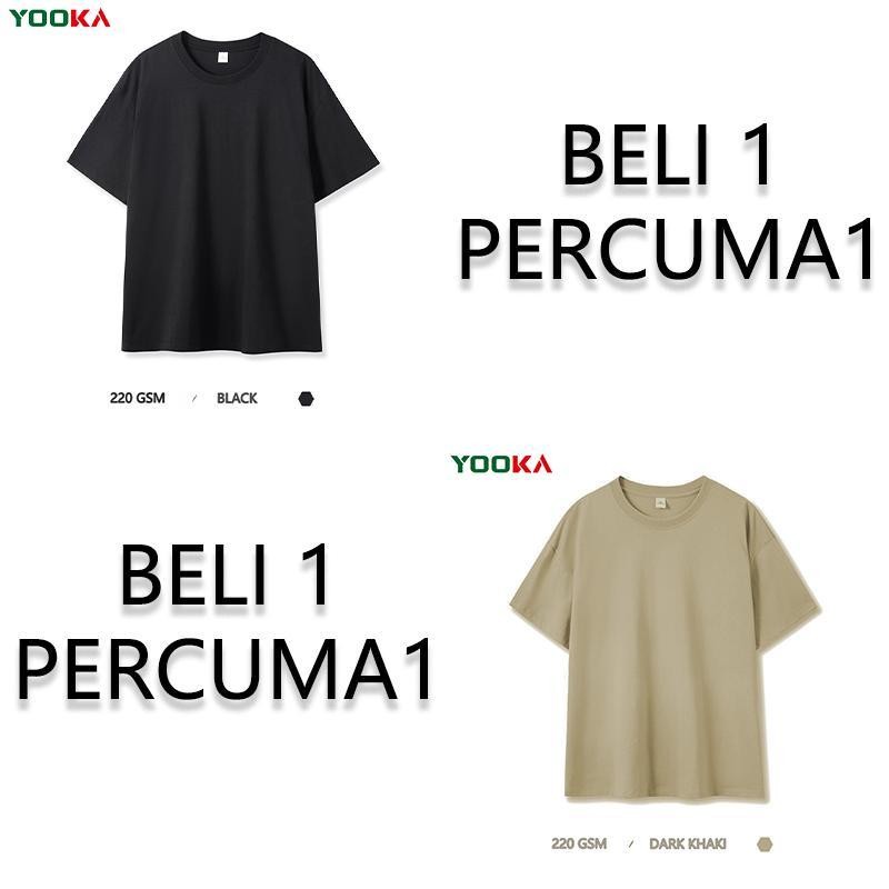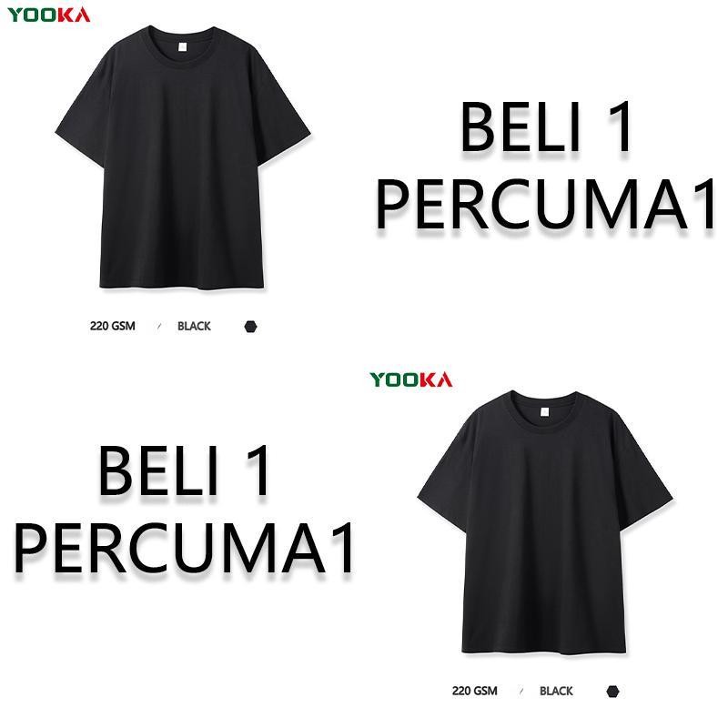 【Beli 1 Percuma 1】 Yooka Tshirt Men Premium 220GSM Round Neck Cotton T-ShirtT Shirt Short Sleeve Unisex Crew Neck Tee