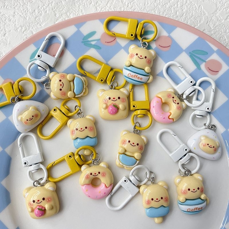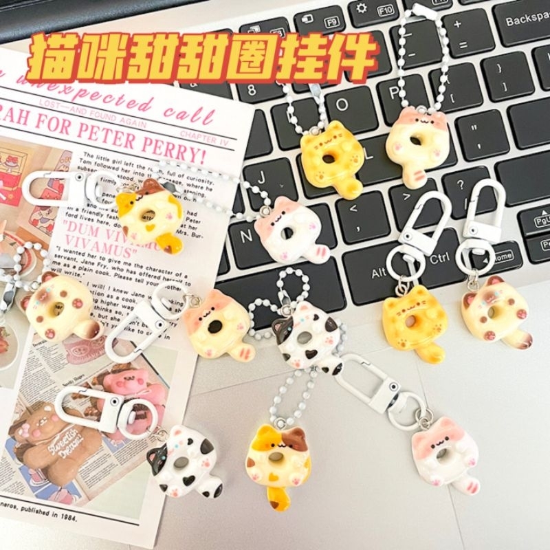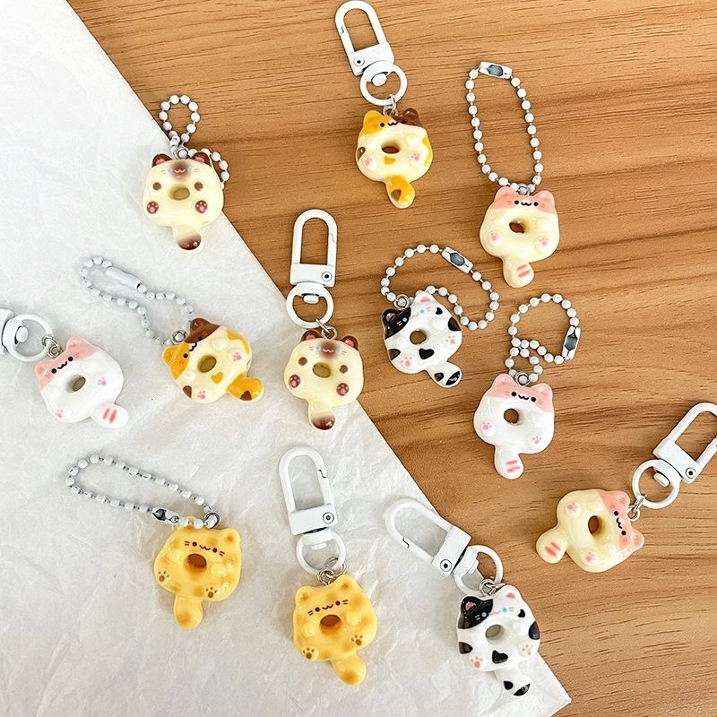Cute Donut Cat Bear Mini Keychain, Student Pencil Case Keychain, School Bag Keychain