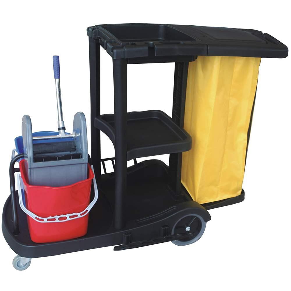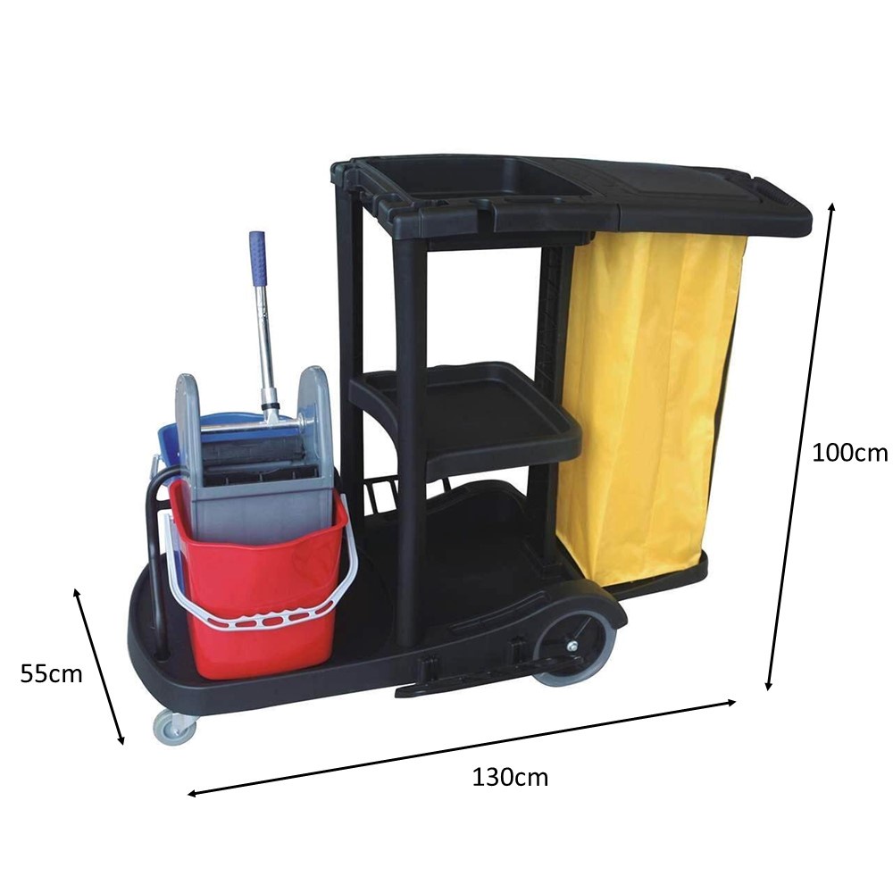 CLS CLASSIC Cleaning Trolley Janitorial Cart 3 Storage Shelves and Double Wringer Bucket JC-315 (Black)