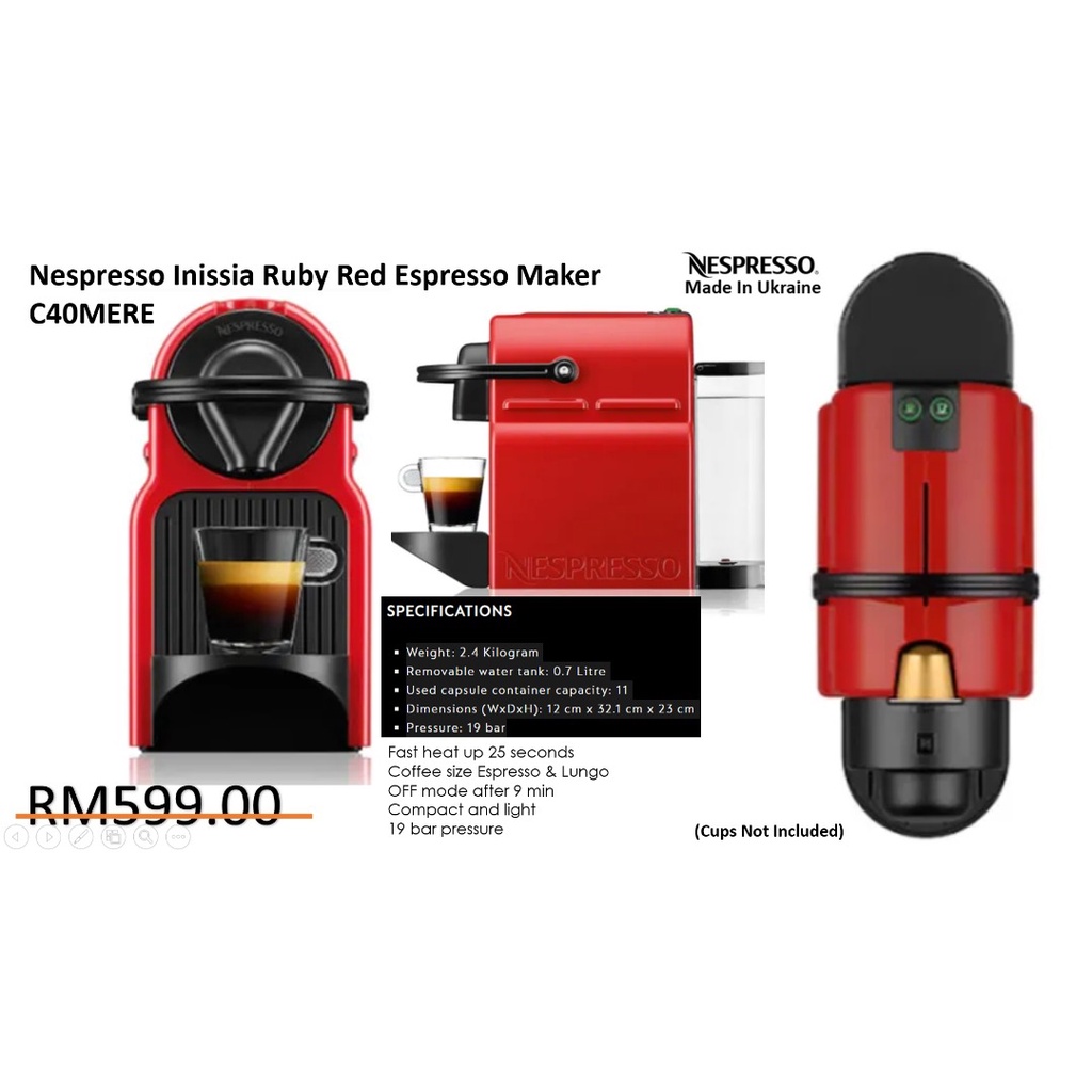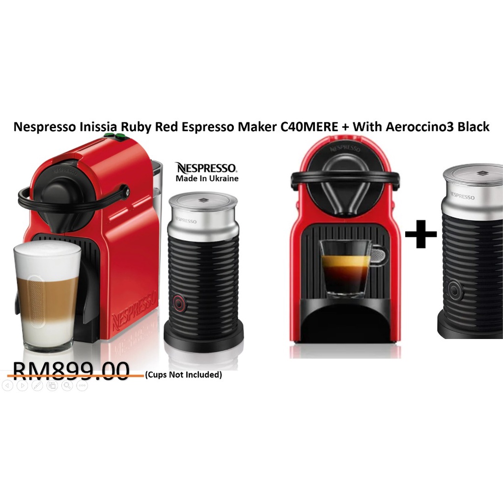 Nespresso Inissia Ruby Red Espresso Maker C40MERE / BUNDLE SET With Aeroccino3 Black