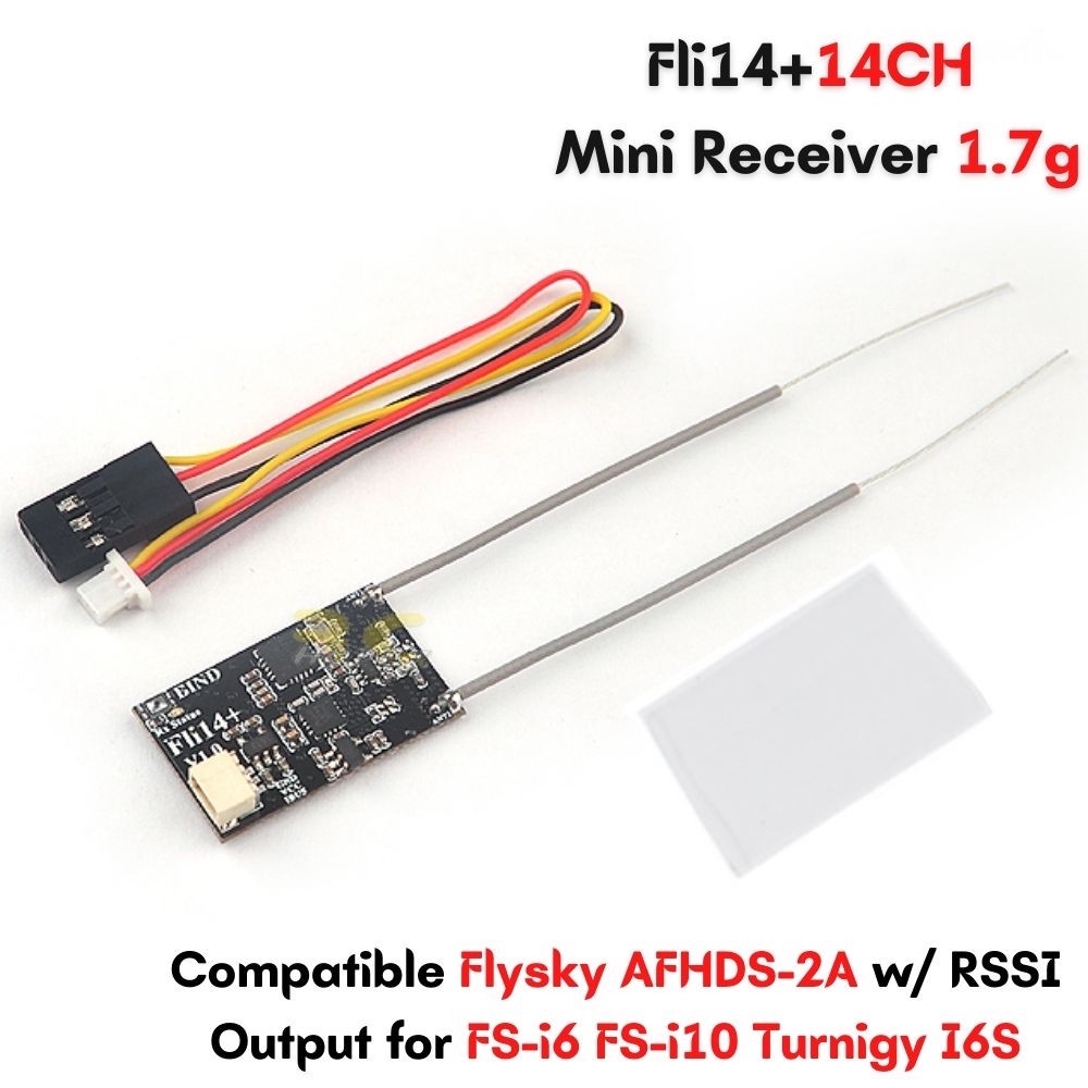 Fli14+14CH Mini Receiver 1.7g Dual antenna Compatible Flysky AFHDS-2A w/ RSSI Output for FS-i6 FS-i10 Turnigy I6S Fli14