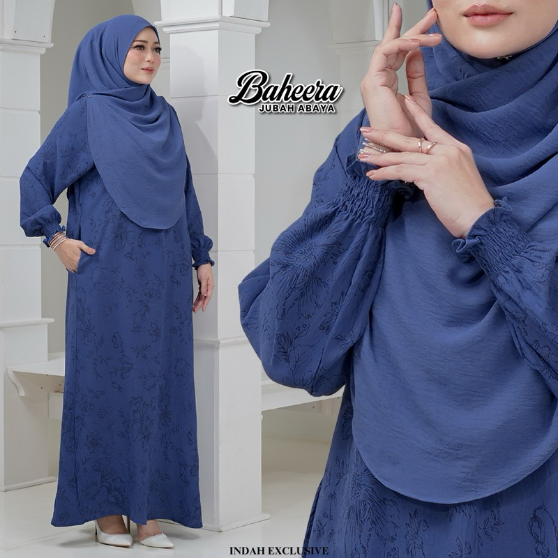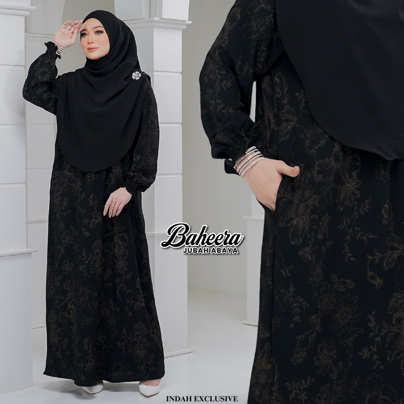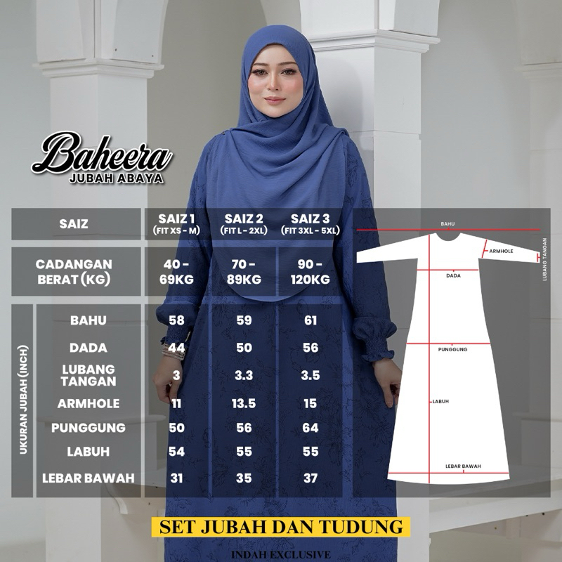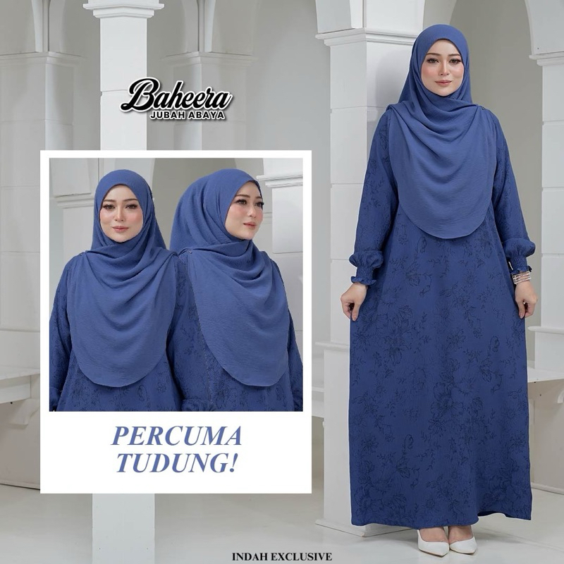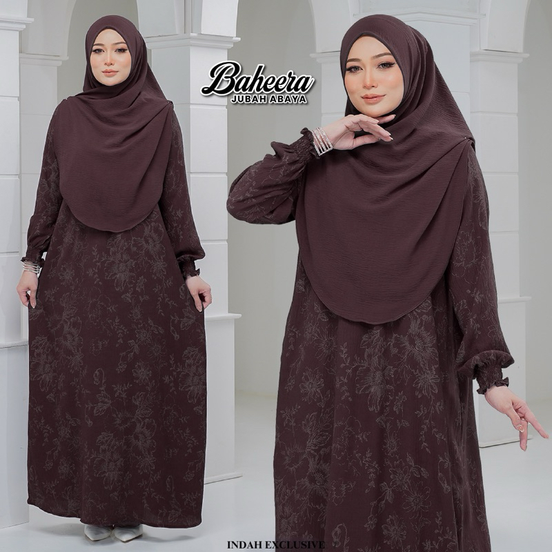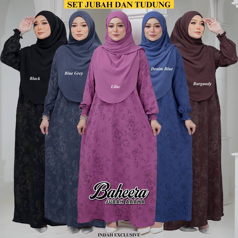 Jubah Baheera Abaya Set Tudung Dress Muslimah Kaftan Printed Ironless Umrah Haji Travel