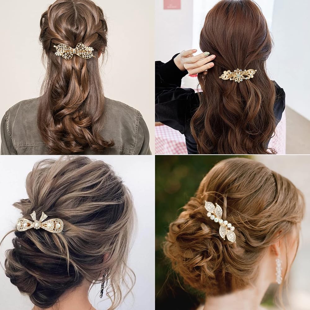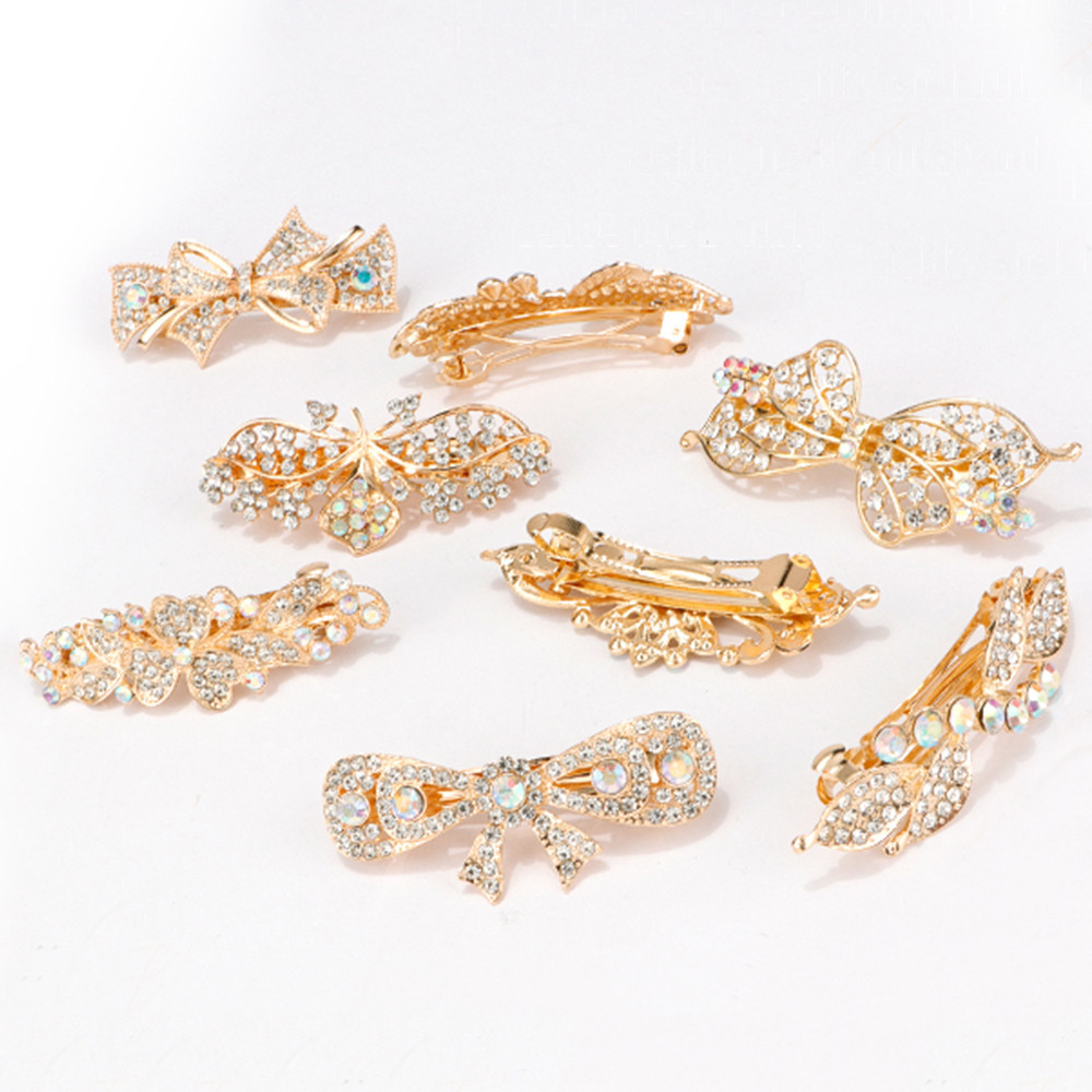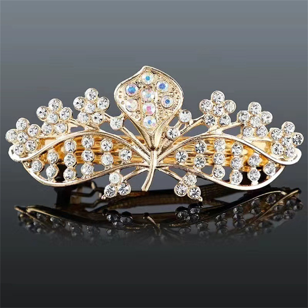 Luxury Full Crystal Spring Hair Claws Trendy Pearl Flower Metal Hair Pins Women Ponytail Holder Hair Grab