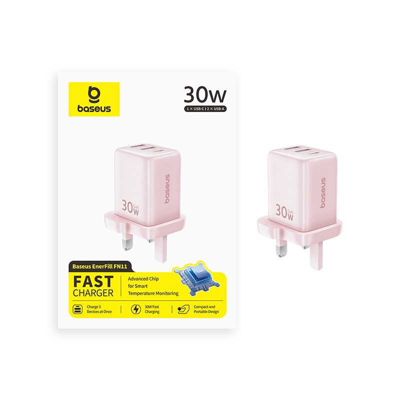 【New Arrivals】Baseus EnerFill FN11 Fast Charger GaN USB Type C Charger 30W UK Compact Quick Chargers For iP Samsung