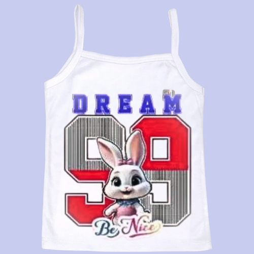 1 Pcs Tanktop Strap Children's Singlet White Cotton Combed 40s Serian White Bunny 99 Sublimation Print SML XL Thick Smooth Soft Quality Absorbs Sweat Safe Comfortable on Baby's Skin