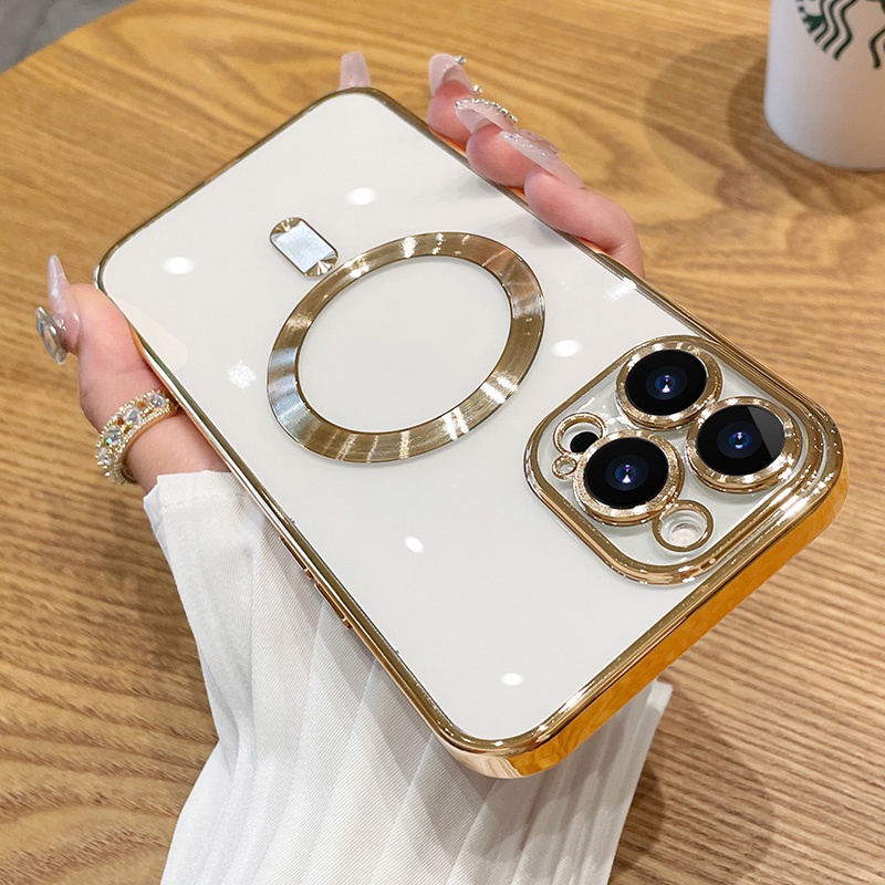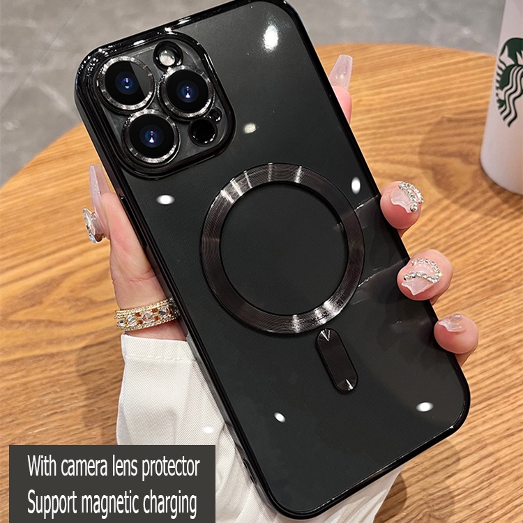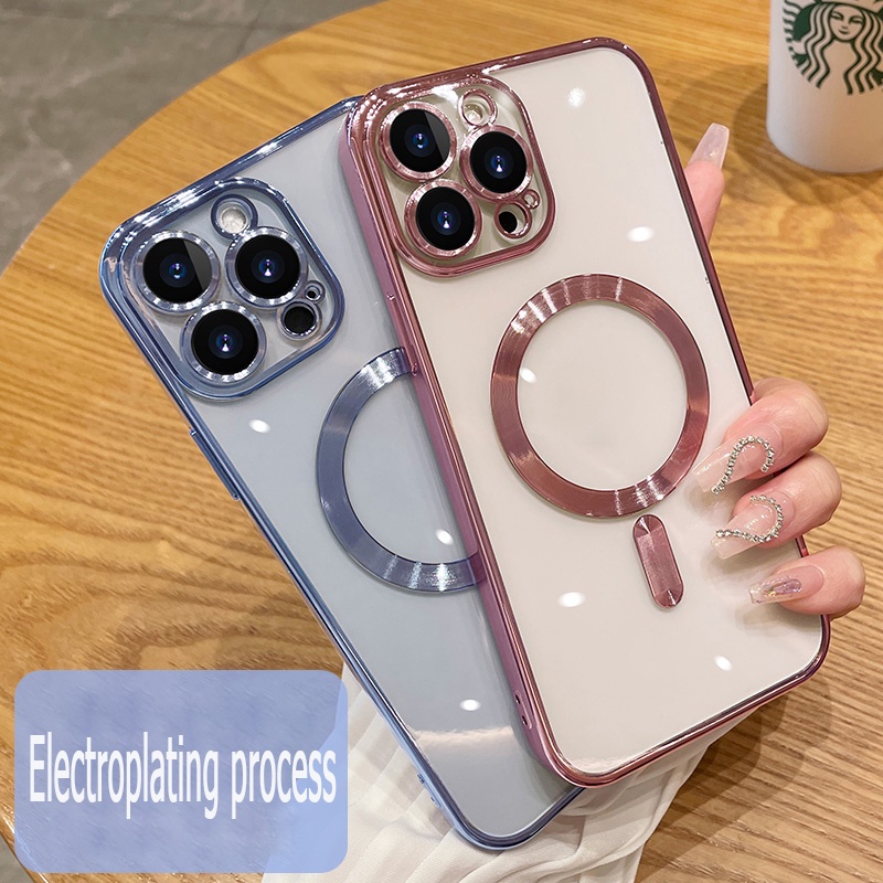 High Quality Electroplating Magnetic Clear Phone Case with Camera Lens Protector Compatible with iPhone 13 12 Pro Max Silicone Case Cover Potective Casing