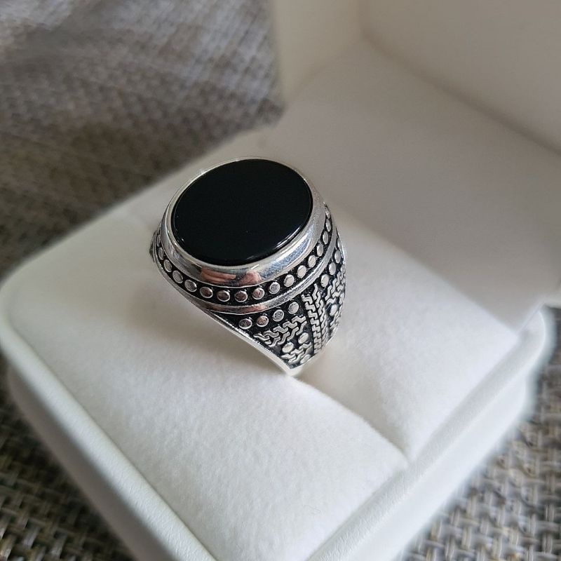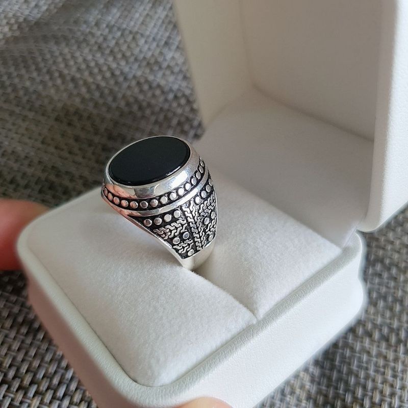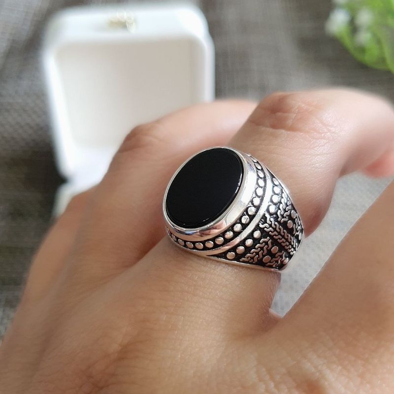 Men Ring Black Agate Turkish Vintage Original Silver 925 Cincin Lelaki Nikah Kahwin