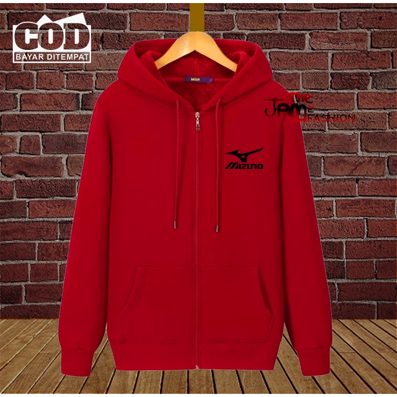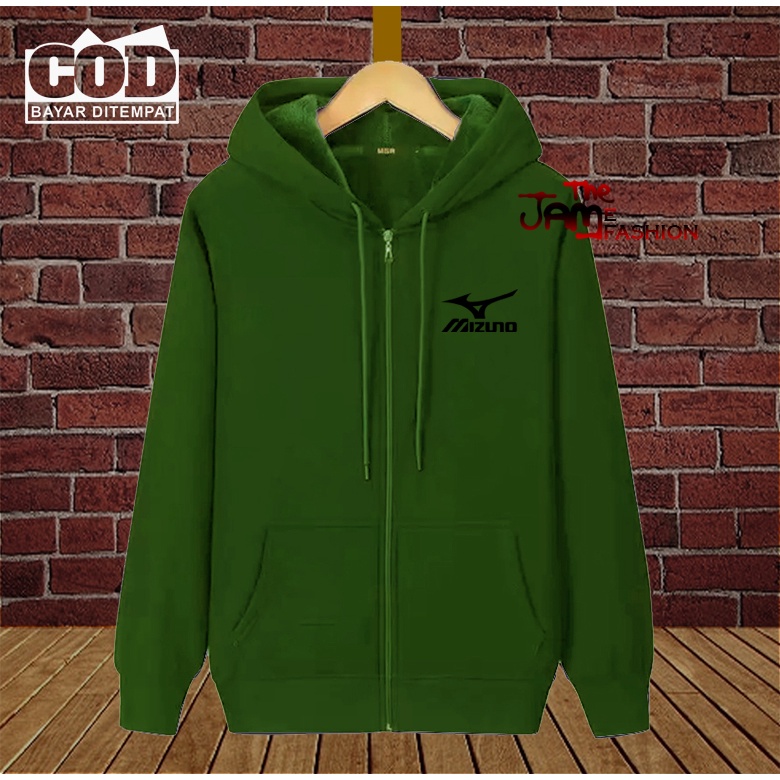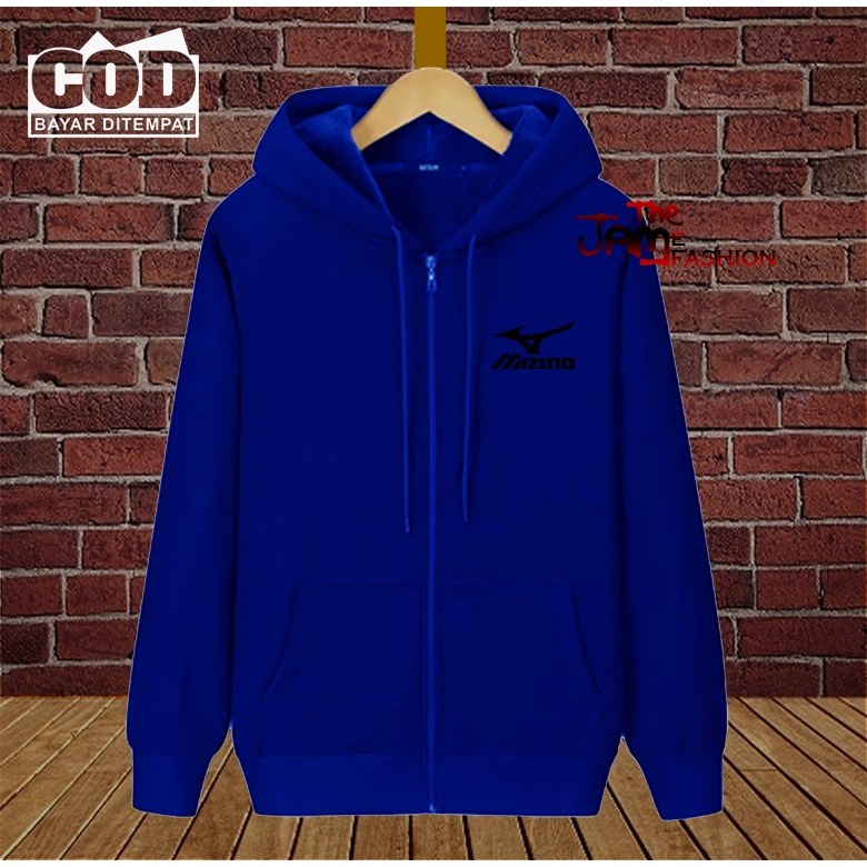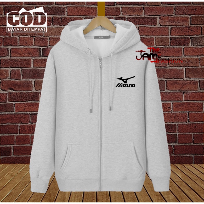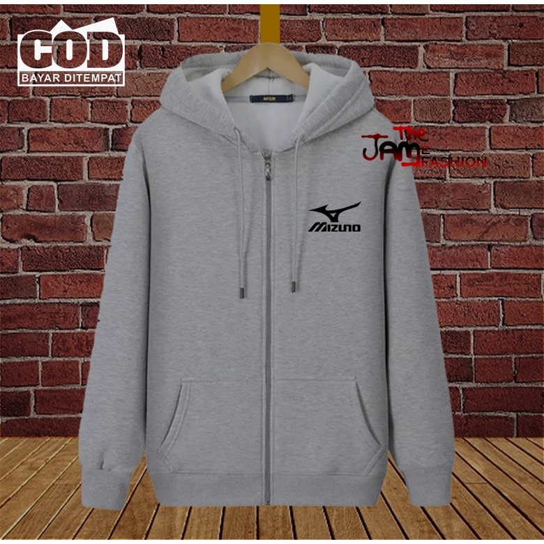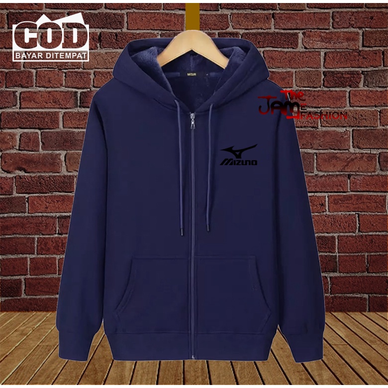 Mizuno Quality Black Premium Quality Distro Zipper Jacket Sweater with Words Hoodie Screen Printing