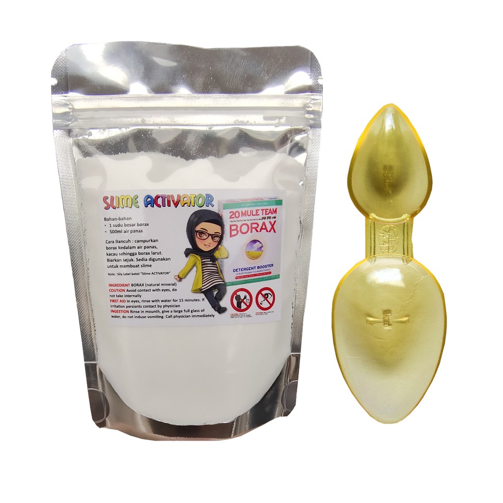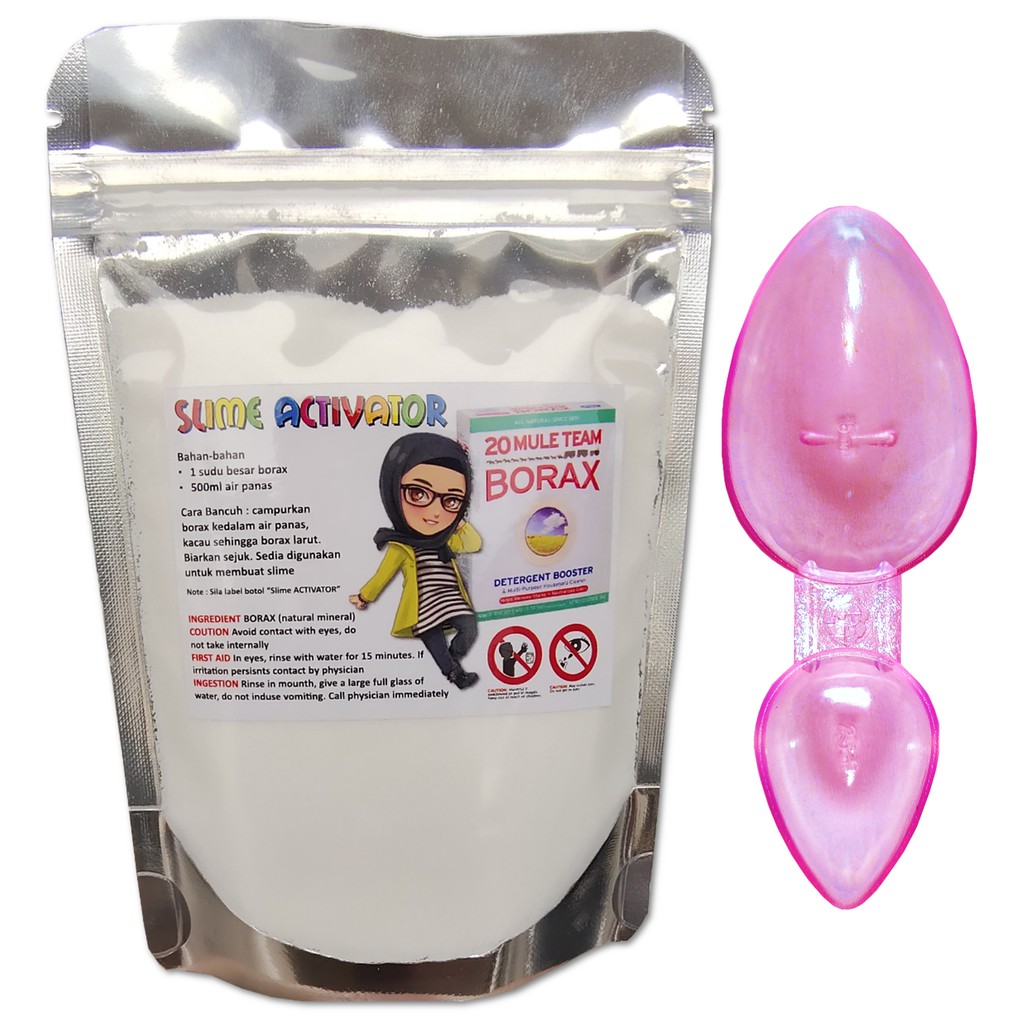 ORIGINAL BORAX 20MULE FOR MAKING SLIME 50G/100G (REPACK) - FREE SPOON & TUTORIAL - slimebykaklyn