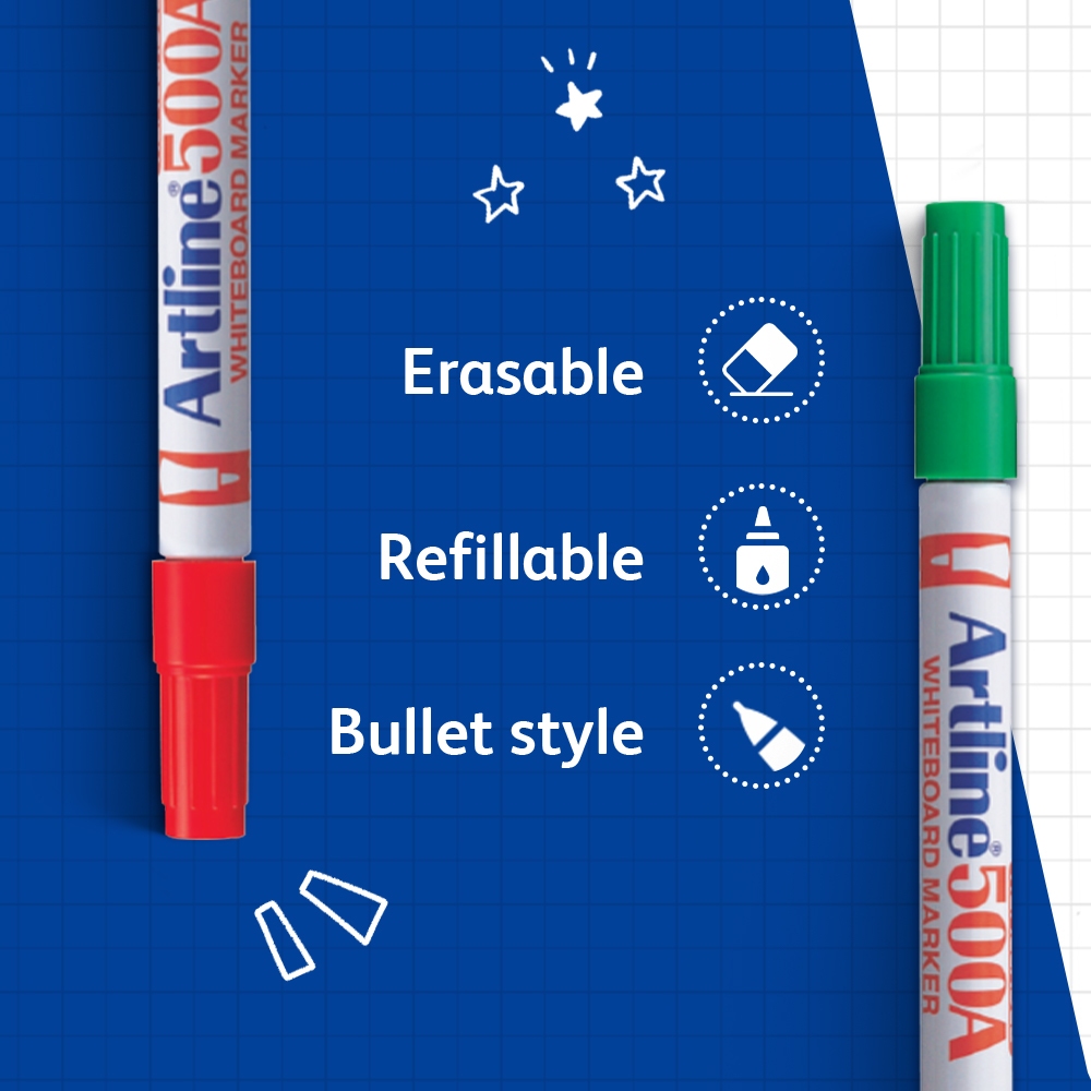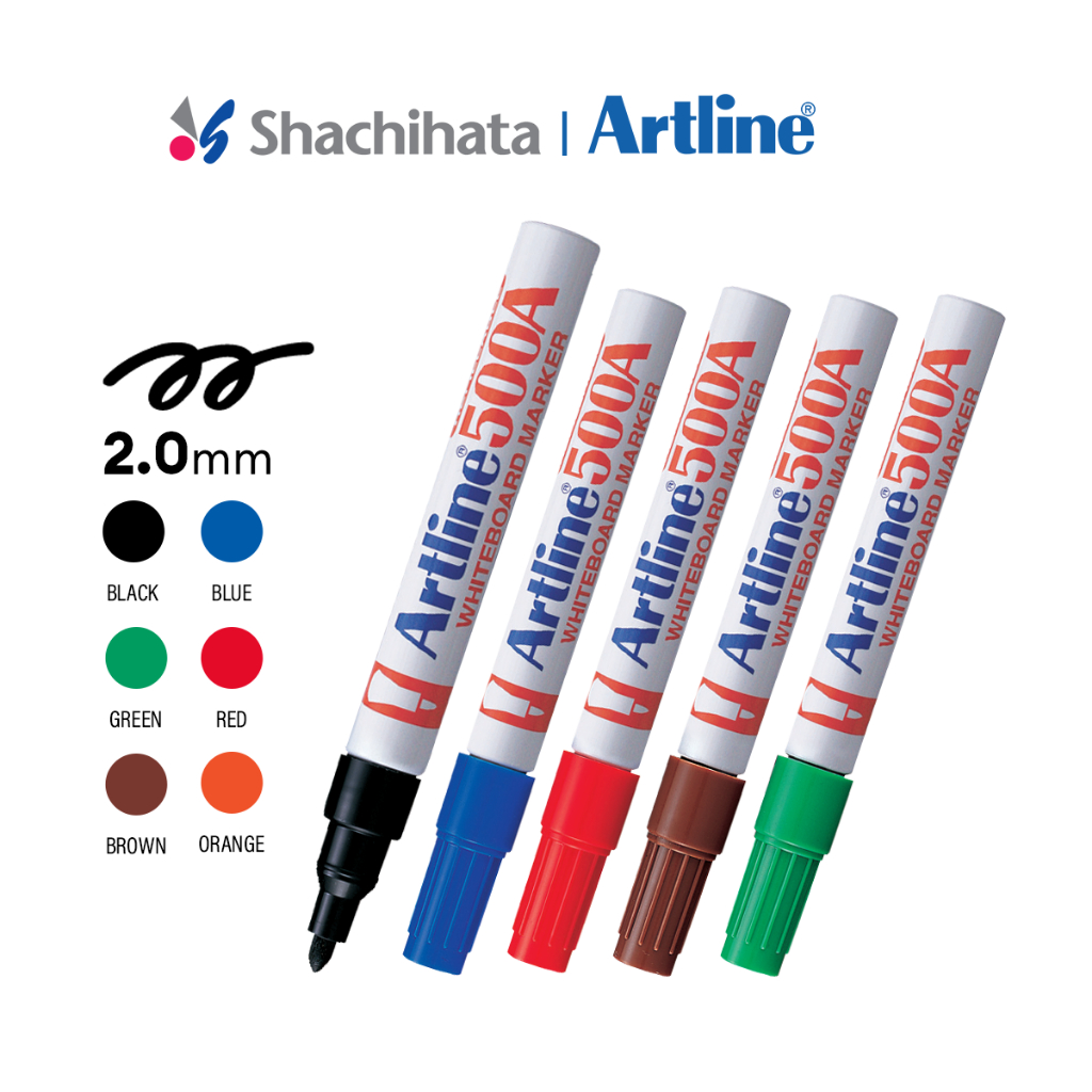Artline 500A / 509A Whiteboard Marker - Medium Point 2.0mm - 5.0mm | 6 Colours | Refillable
