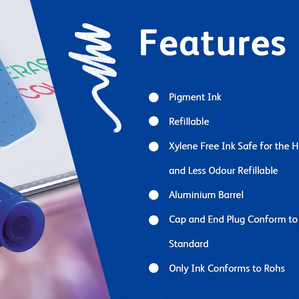 Artline 500A / 509A Whiteboard Marker Box Set (12pcs) - Medium Point 2.0mm - 5.0mm | 6 Colours | Refillable