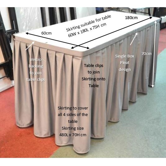 Table Skirting for table size 60W x 180L x 75H cm, Table clips included