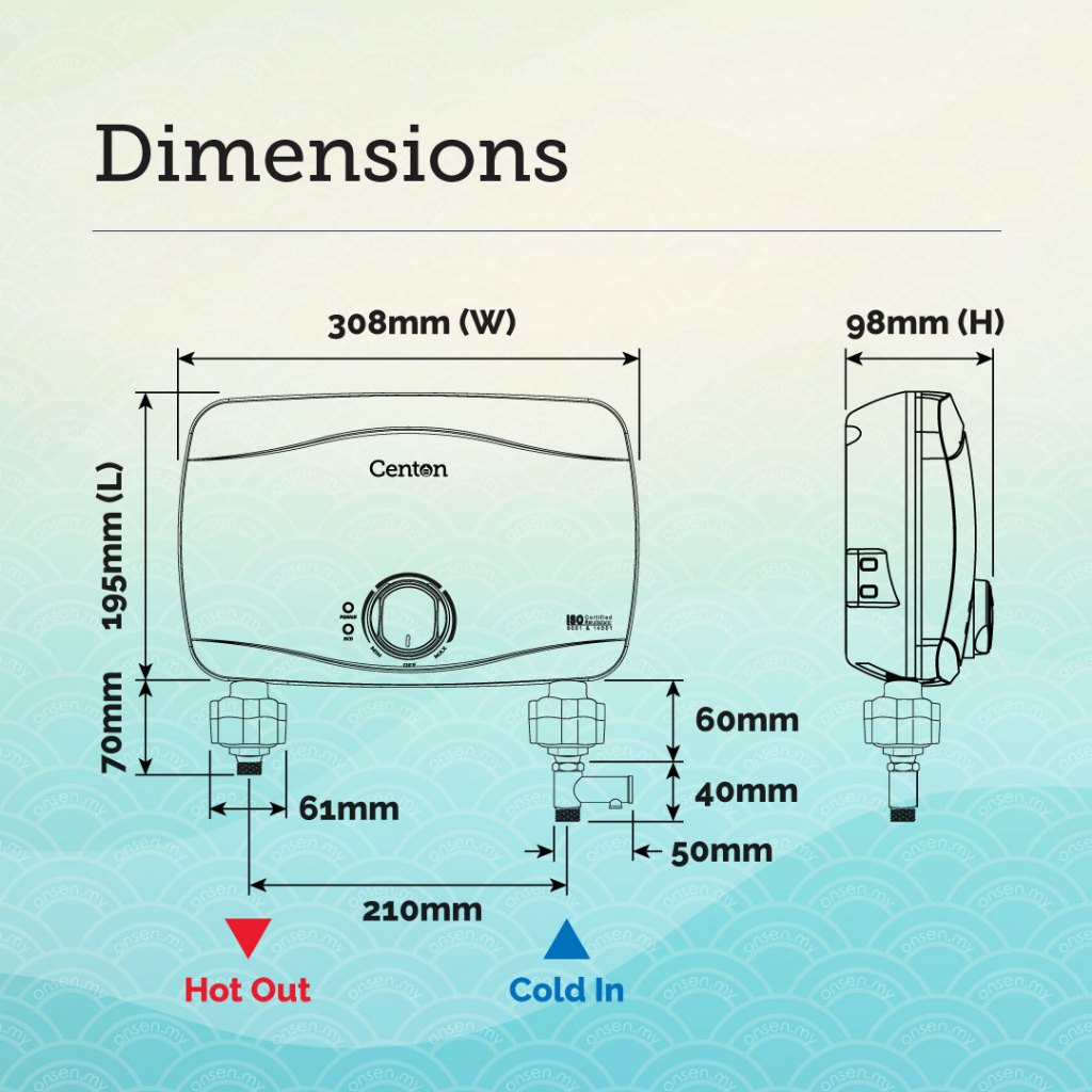 CENTON Multipoint Instant Shower Water Heater - Forza FR255 Series | 5.5kW / 7.0kW Ultra Hot Heating