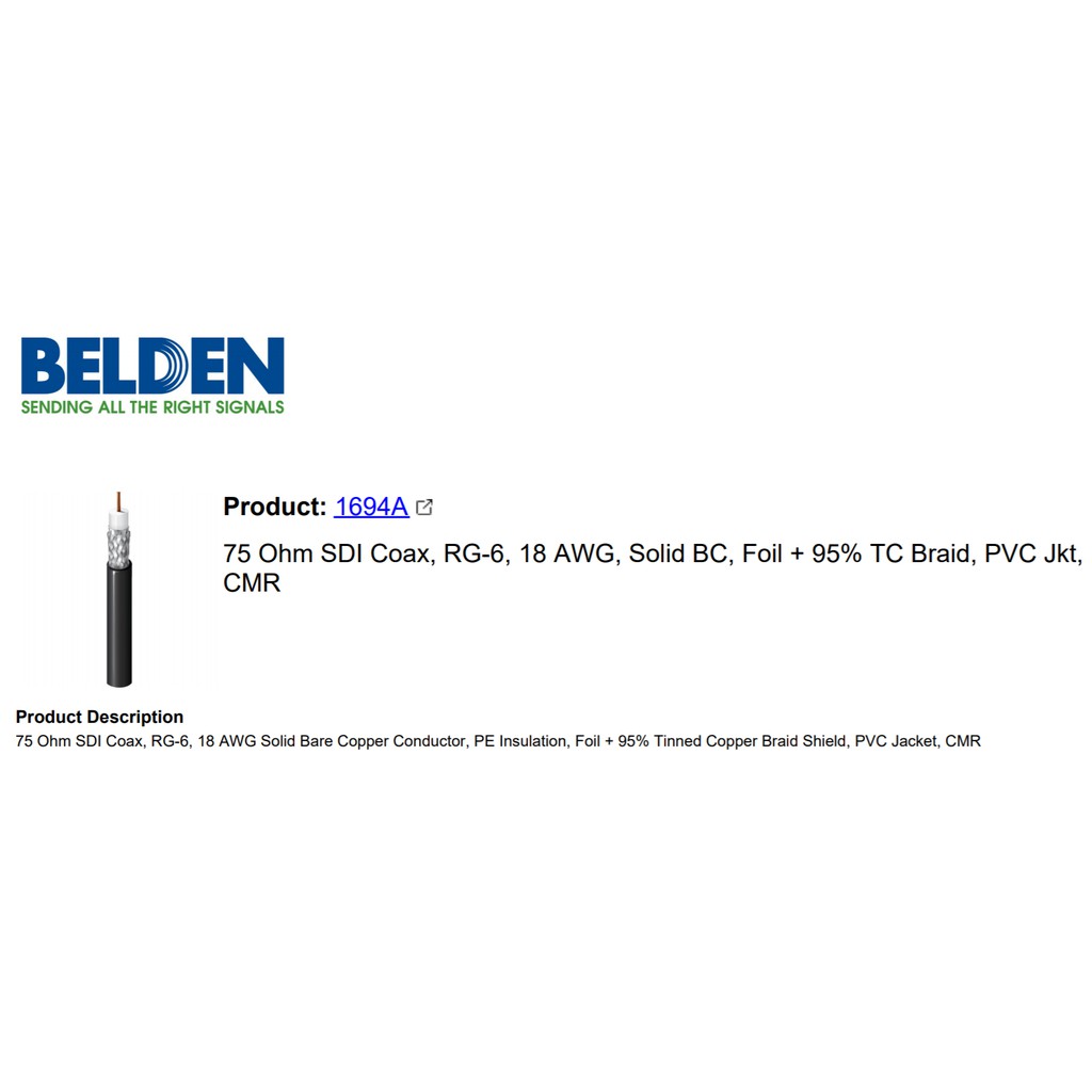 Belden Coaxial RG6 Cable (Belden 1694A)
