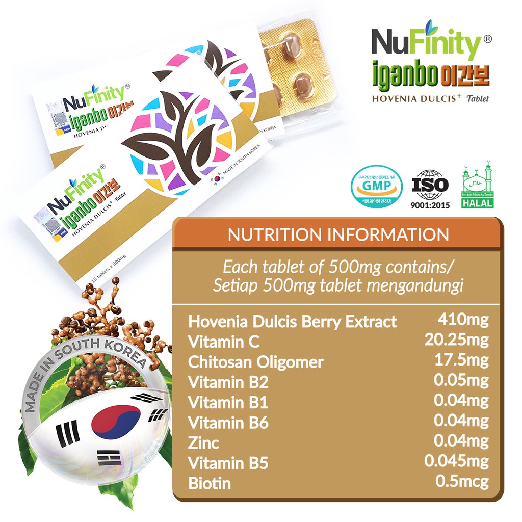 NuFinity® Iganbo Hovenia Dulcis+ 10 tablets x 500 mg Ultimate Liver Care From Korea