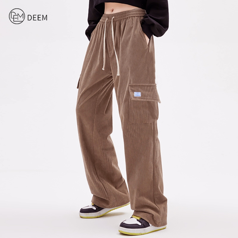 DEEM Cargo Pants Women Corduroy Straight Cut Long Trousers