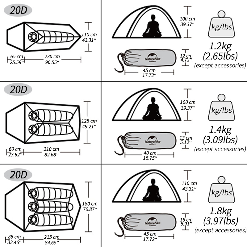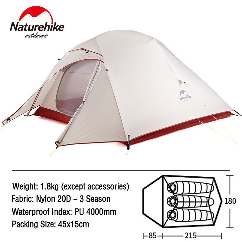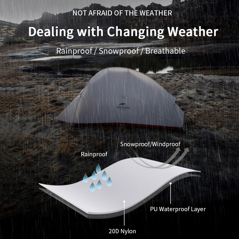 Naturehike Waterproof Cloud Up 1-3 People Camping Ultralight Tent 20D
