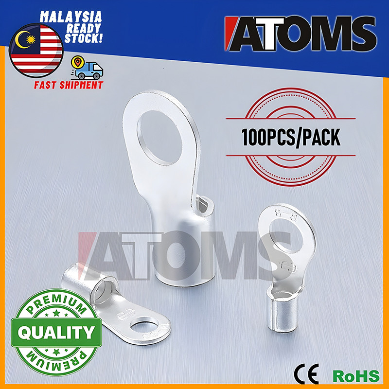 【100pcs】ATOMS R Non Insulated RING Terminal Ring Lug Copper Lug Cable Lug R Terminal connector