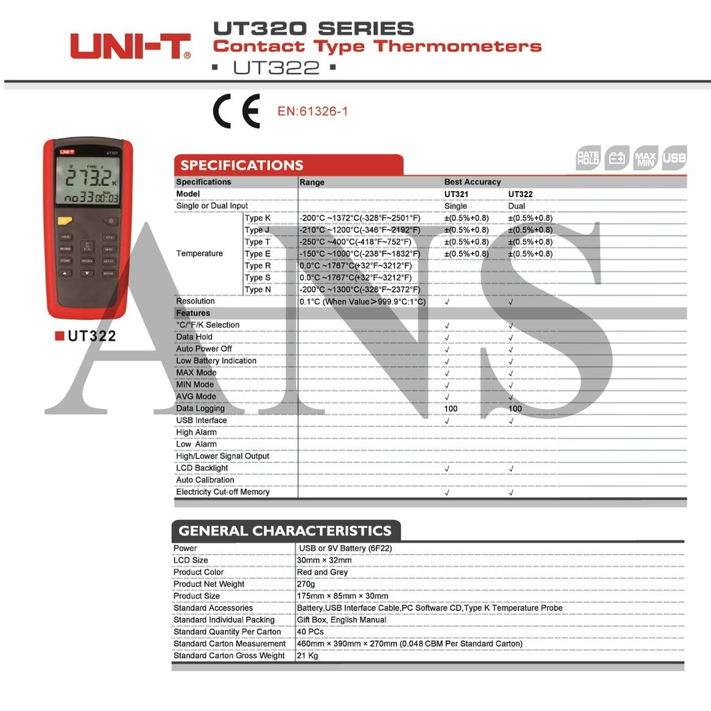 UNI-T UT322 DIGITAL THERMOMETER