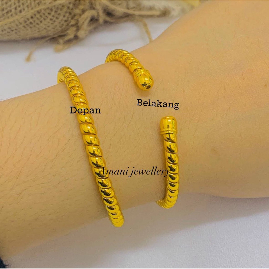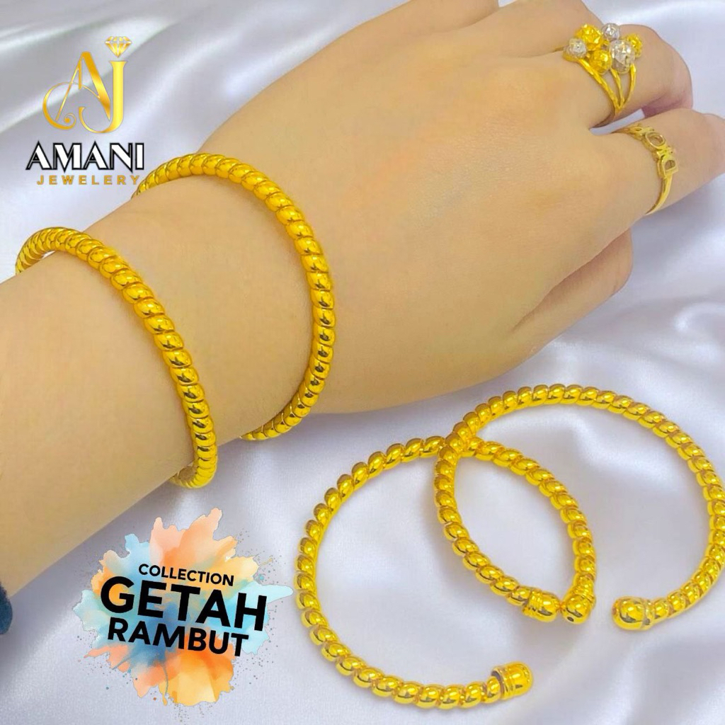 Gelang Tangan Bangle Getah Rambut Cop 916 Emas Bangkok Titanium Anti Karat Amani Jewellery