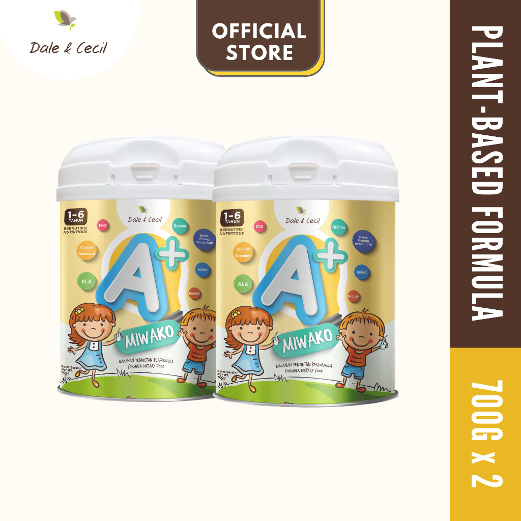 MIWAKO A+ Complete Nutrition Plant-based Formula Milk (700g x 2 Canister) [Exp 29 Jan 2028] Lactose Intolerance