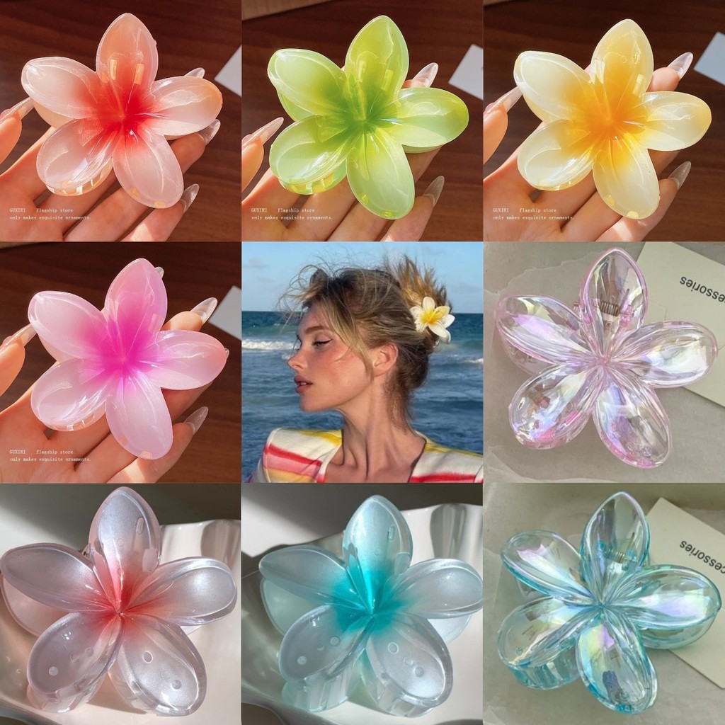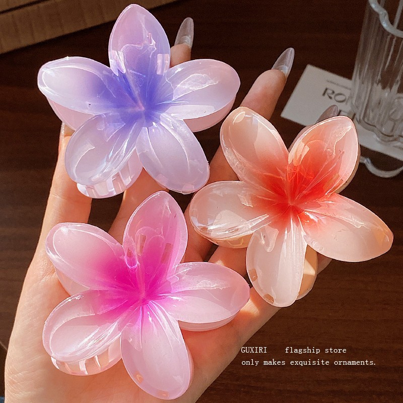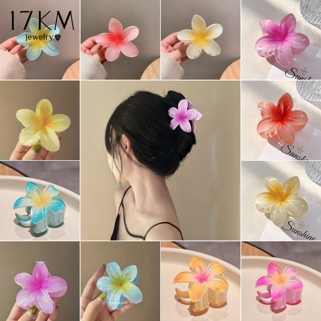 17KM Gradient Hawaiian Plumeria Flower Hairpin Grips Claw Clips for Woman Hair Accessories