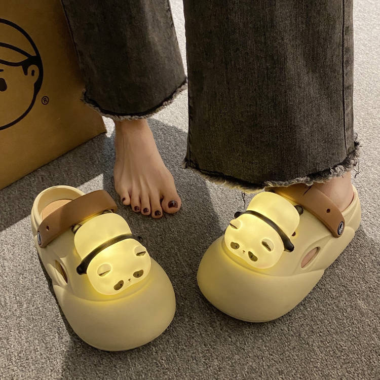 New Cute Panda Light Hole Shoes Fun Cartoon Panda Muffin Toe Cap with Light Slippers 1U8Q