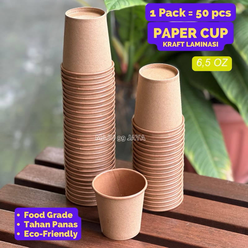 (50 PCS) Hot Paper Cup 6.5 Oz / 180 ml Kraft Brown Laminated | Hot Drink Paper Cup