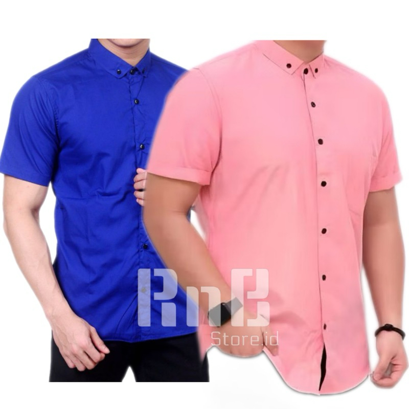 KEMEJA PACKAGE OF 2 PCS PLAIN SHORT-SLEEVED SHIRTS FOR MEN KEMEJA LELAKI LENGAN PENDEK