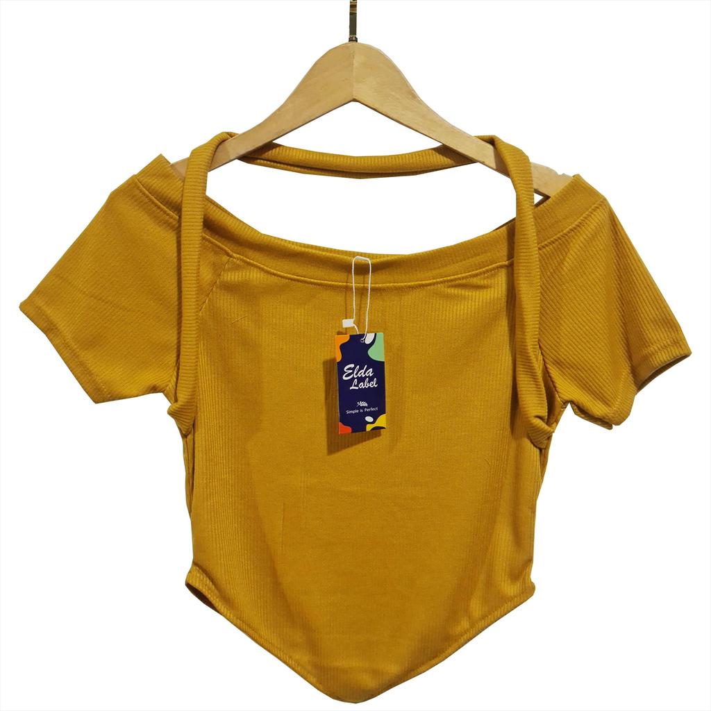 ELDA LABEL CROP TOP WITH BACK STRAP OFF SHOULDER TOP FOR WOMEN