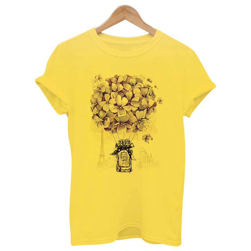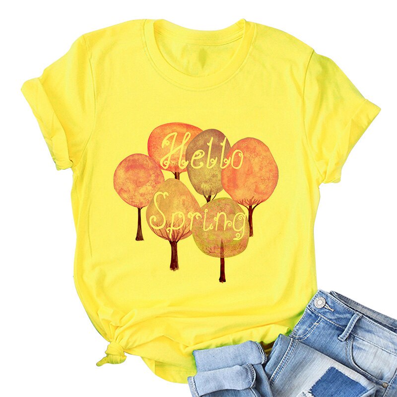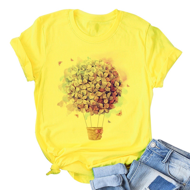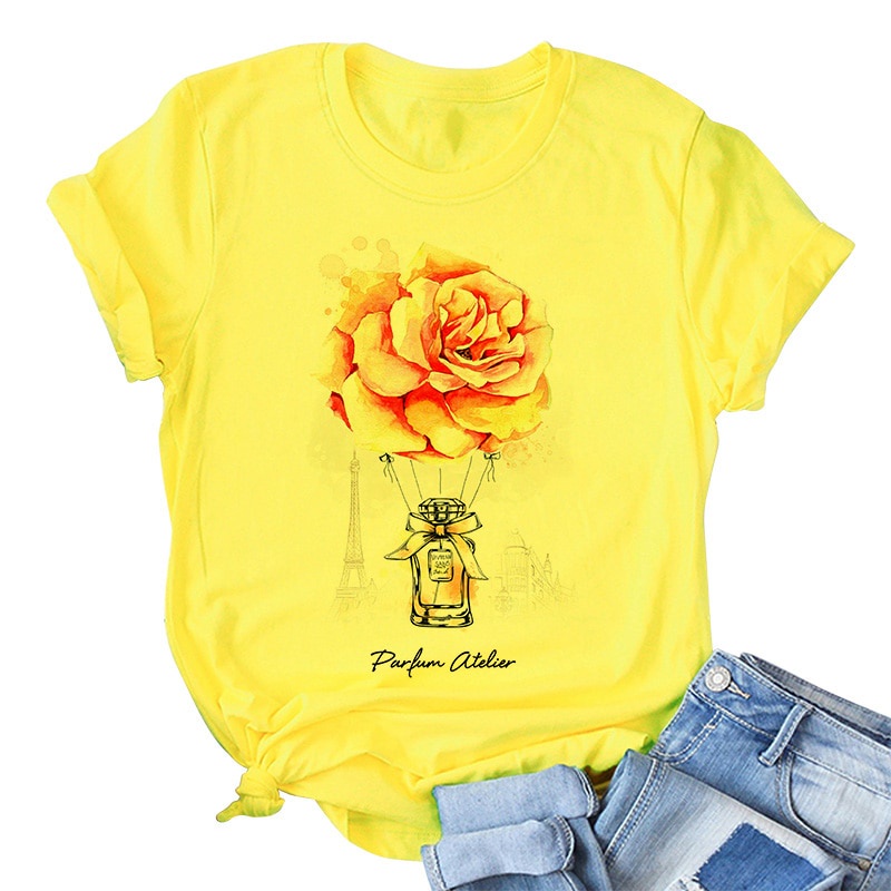 Yellow T Shirt Women 2021 New Summer Short Sleeve Floral Flower Fashion Lady Top Tshirt Ladies Womens Graphic Female Tee T-Shirt