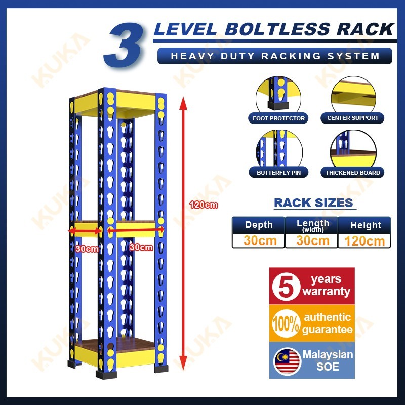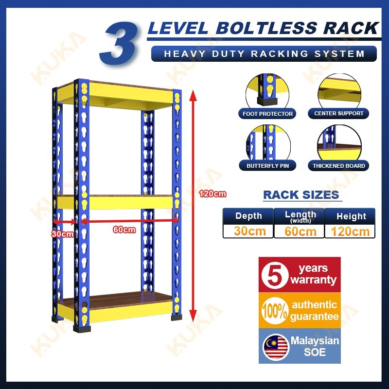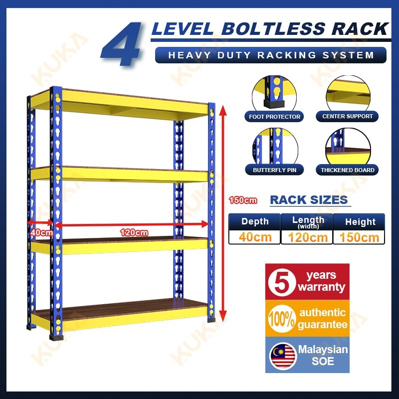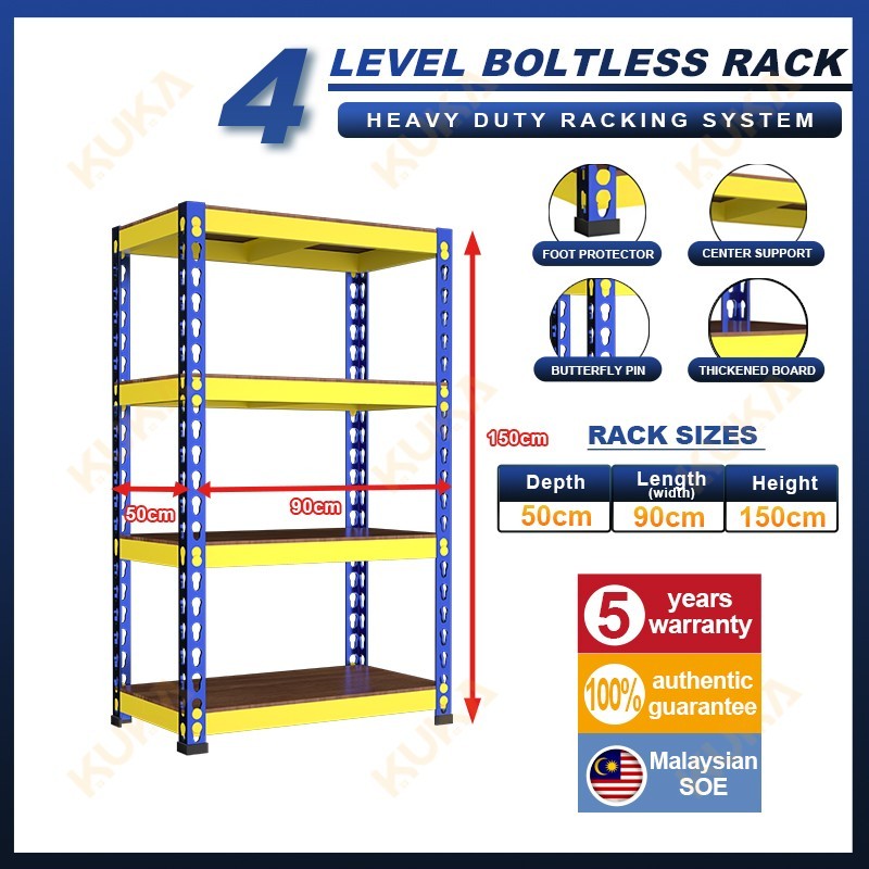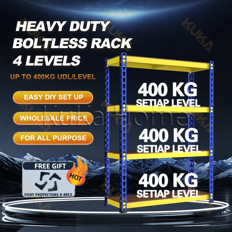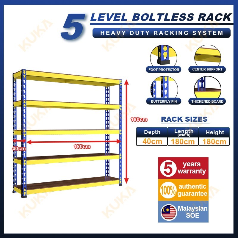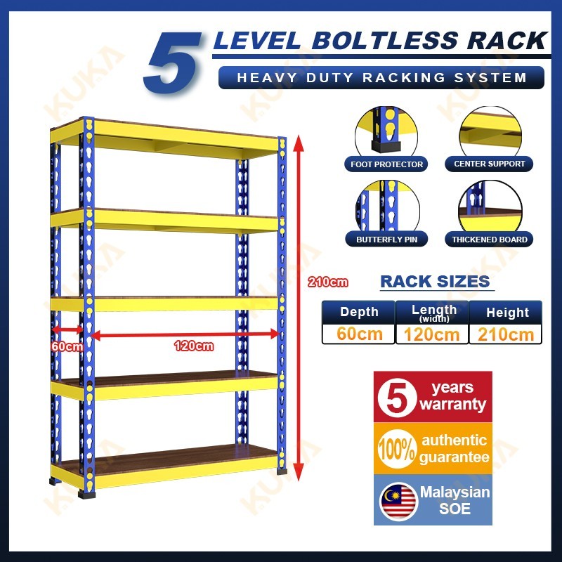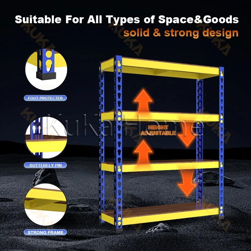 🔥5 Tier Boltless Heavy Duty Rack Metal Frame Rak Besi Bertingka Warehouse Office Adjustable Storage Shelves Rak Dapur 货架