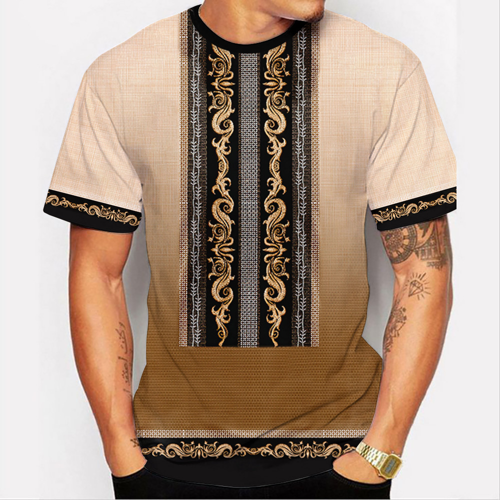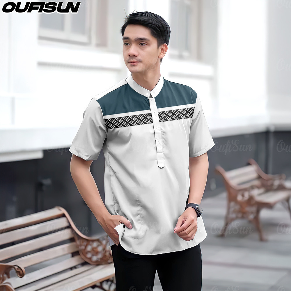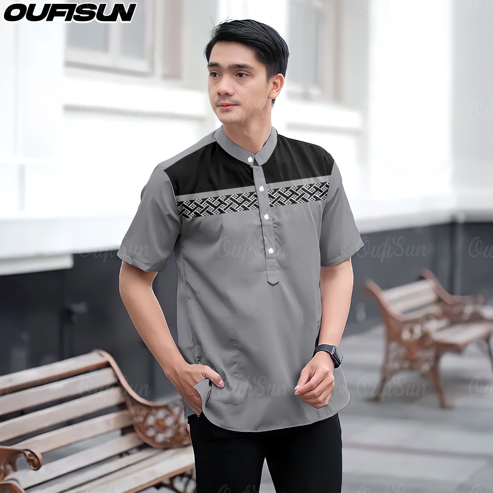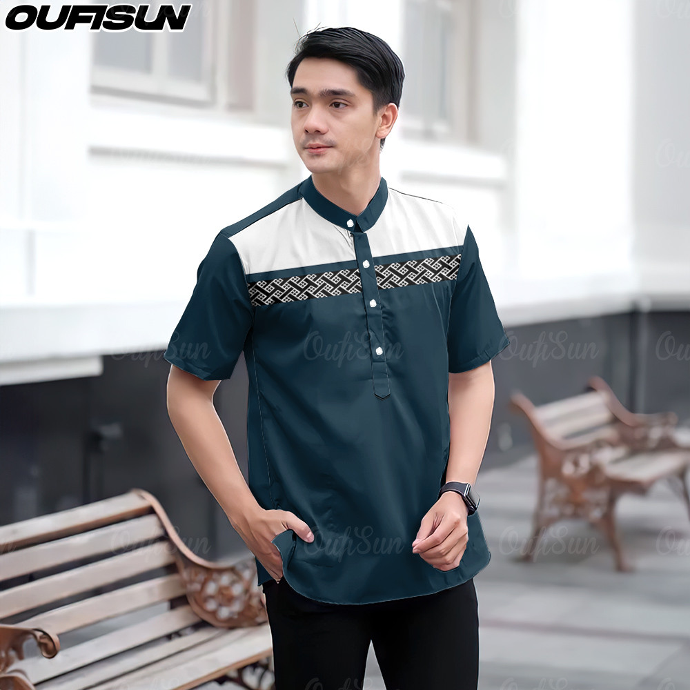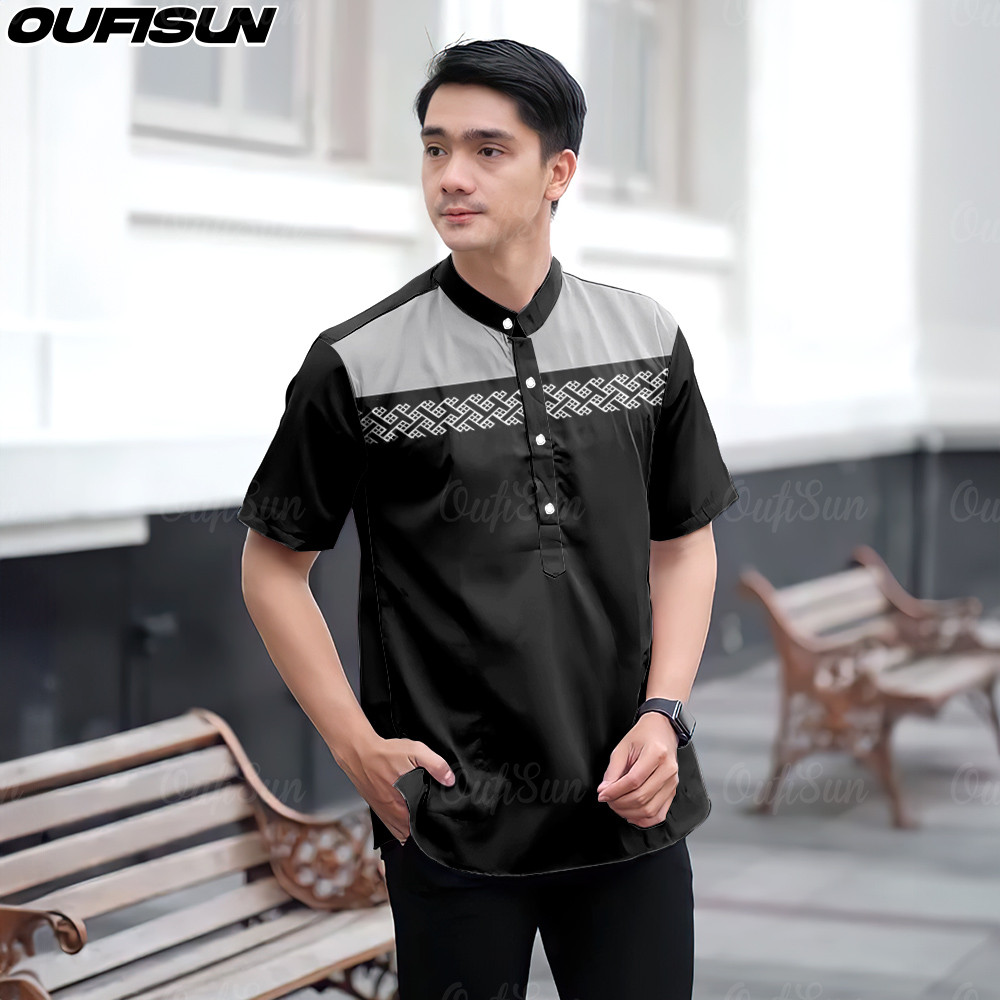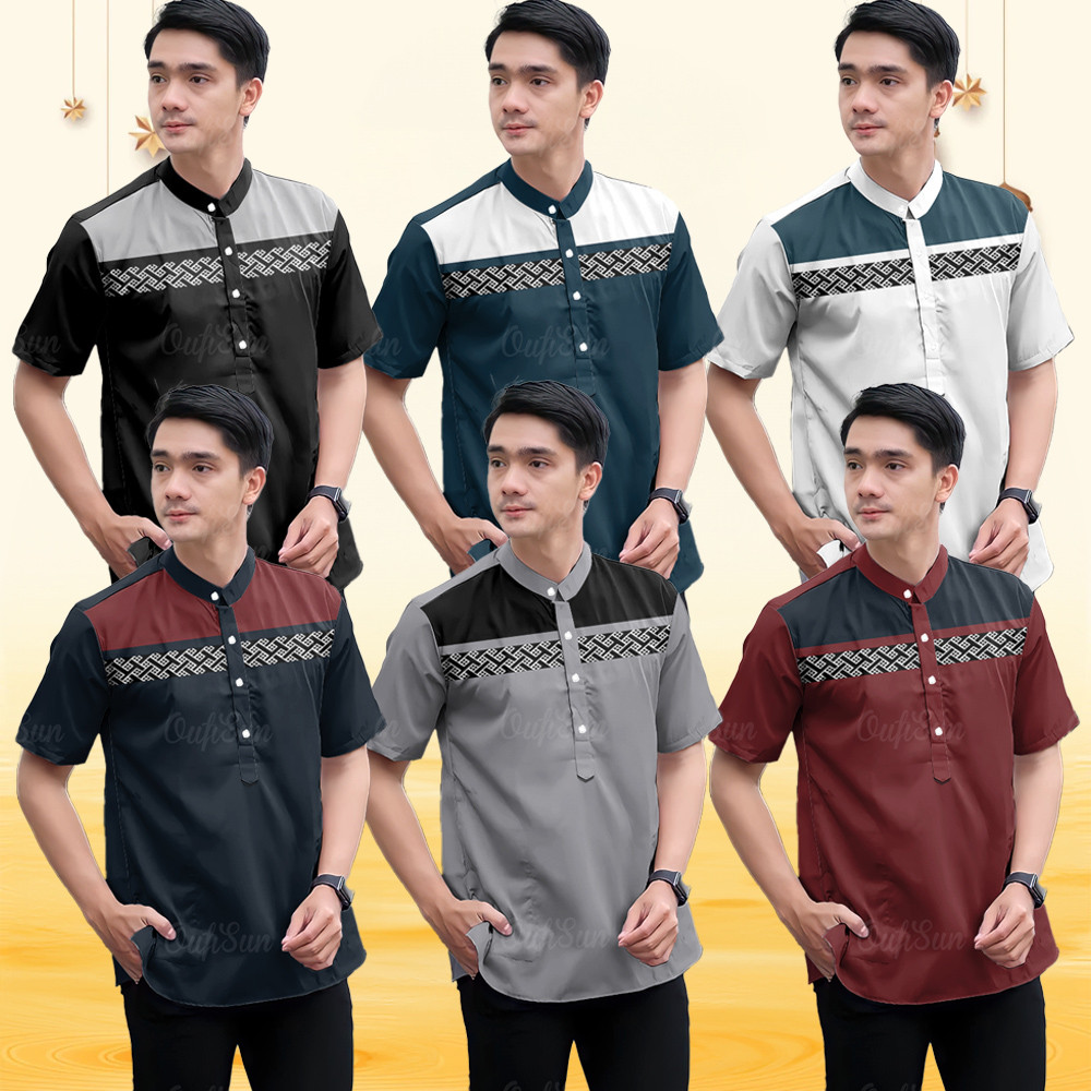 Koko Kurta Kemeja Batik Lelaki 2025 Malaysian Muslim Kemeja Lelaki Lengan Pendek Loose Breathable Muslim Party Striped Shirt