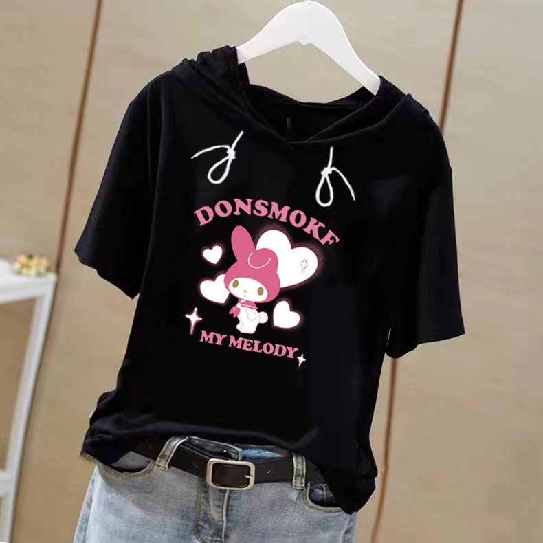 短袖帽T恤女生hoodie women Short sleeve t-shirt sweatshirts clothes loose korean style plus size top woman summer new trend graphic printed hooded sweater2023女生衣服连帽卫衣