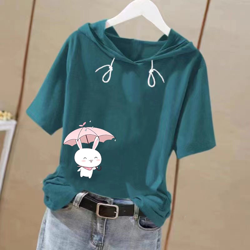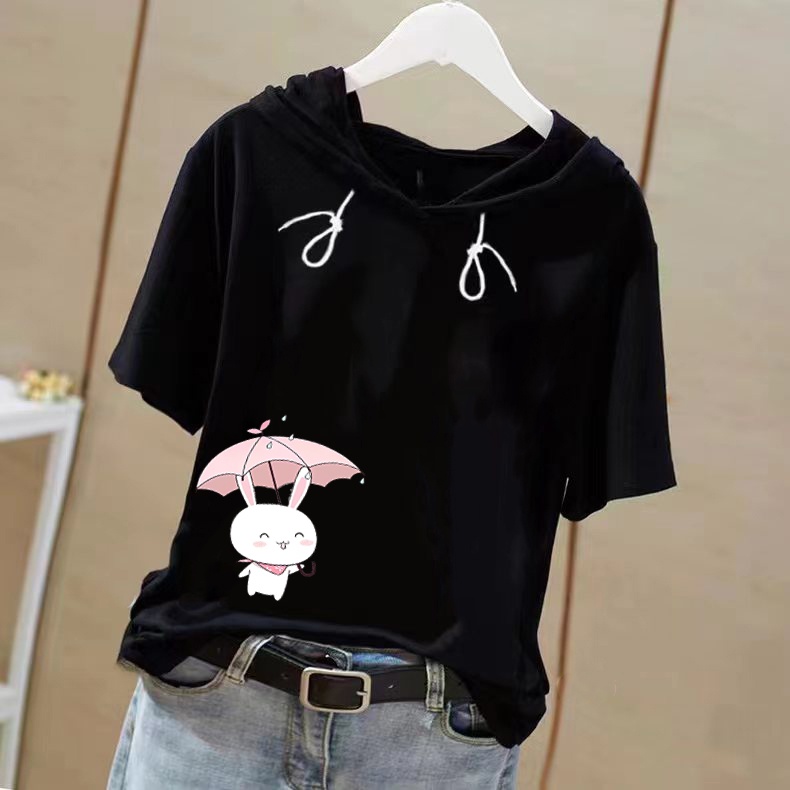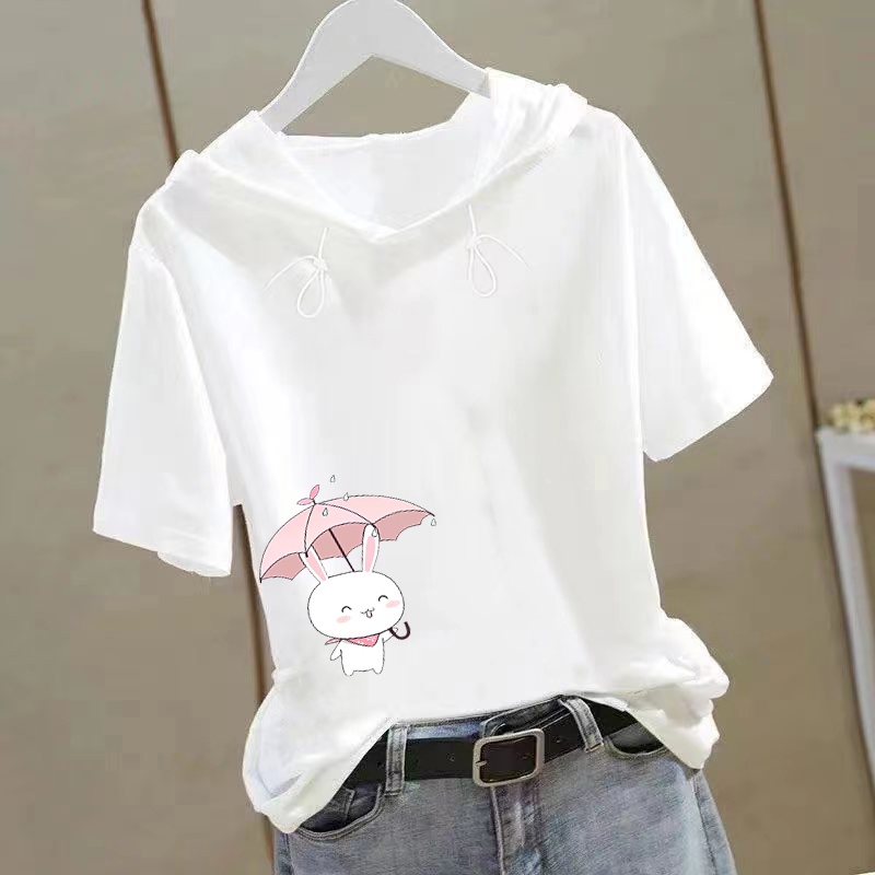 卡通女装上衣女T恤White Short sleeve top summer 2023new hooded clothing hooded t-shirt fashion hoodie women Korean printed casual loose Short sleeve tops women