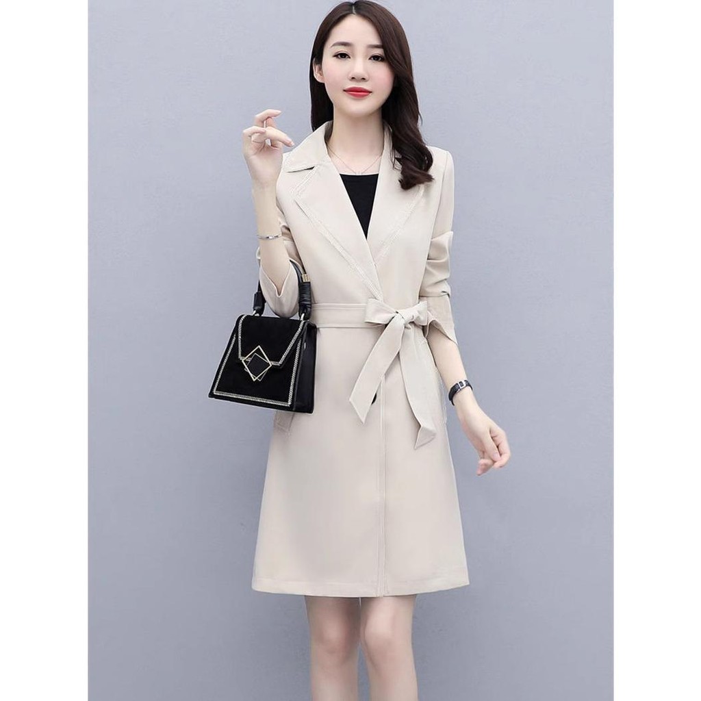 Beige Long Sleeve Plus Size Elegant Trench Coat - Up to 4XL