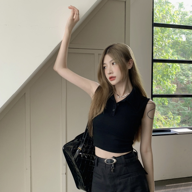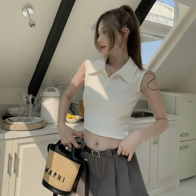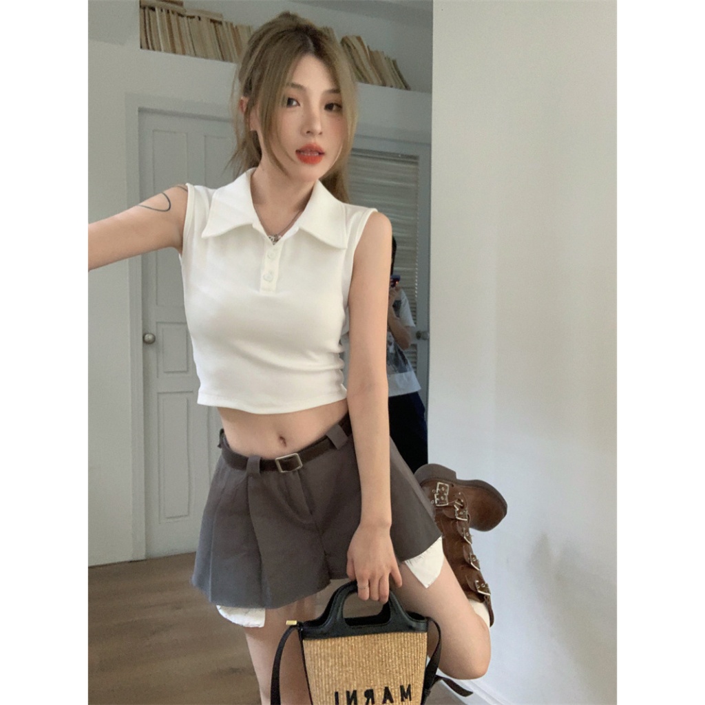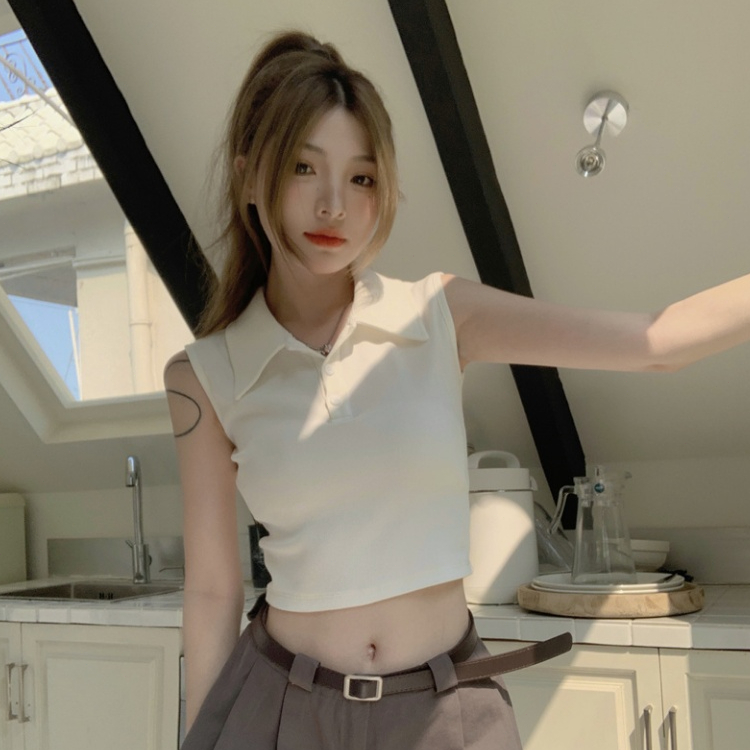 cherryshop Y2K Crop Top Fashion T-Shirt For Women Plain Color Simple And Modern. Korean Style