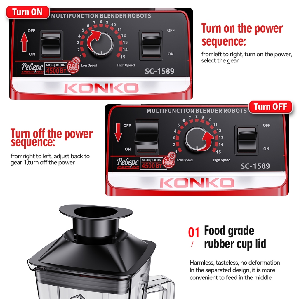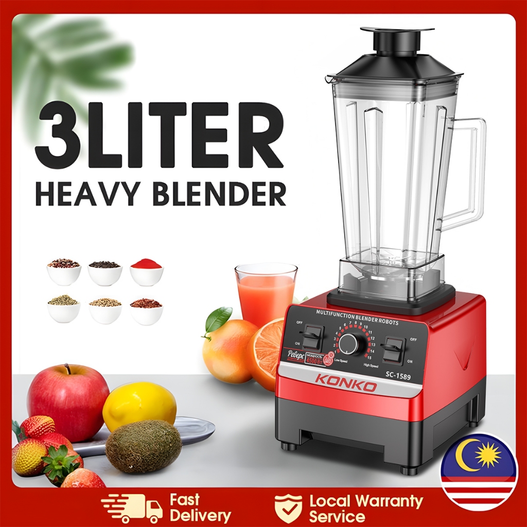 KONKO Blender Heavy Duty 2.5L 4500W Juicer Blender Mixer BPA Free Electric High Speed Juicer High Power Food Processor Ice Smoothies Crusher Mesin Pengisar Ais mesin ais blender 搅拌制冰机 攪拌機 破壁机 冰沙机 Blender Serbaguna Pengisar 2.5L Tugas Berat