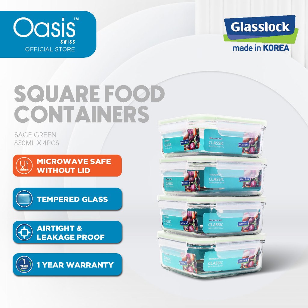 (Microwave safe)Glasslock Bekas Kaca Kedap Udara Airtight Food Container Glass Square 850ml 4pcs